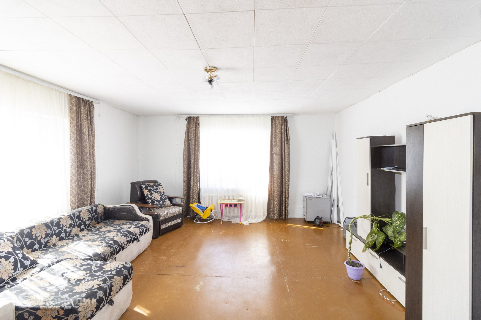 Дом построен из бруса, утеплен мин.ватой, обложен кирпичом, ленточный фундамент (утеплен по всему периметру), установлены качественные пластиковые окна. Также имеется цокольный этаж (высота 1,8 м.). Водоснабжение дома осуществляется из колодца (как и у всех соседей), установлен мощный насос, вода чистая, дополнительной очистки не требует. Есть септик на 10 куб.м. Отопление дома - газовое. Площадь дома 215,7 кв.м.: площадь первого этажа 127,5 кв.м., второго этажа - 90 кв.м., котельная (9 кв.м.). На втором этаже Вы можете организовать огромную детскую с игровой и учебными зонами, либо комнату отдыха и релаксации, возможно спортзал, библиотеку, одним словом, пространство позволяет сделать, что душе угодно. Асфальтированная дорога ведет до самого участка, красивые ухоженные улицы, спокойные приятные интеллигентные соседи, со всех сторон построены симпатичные коттеджи, всё радует глаз. Так же на участке есть баня, осталось установить печь. Участок ухожен и обработан, есть плодоносящие насаждения, теплица.