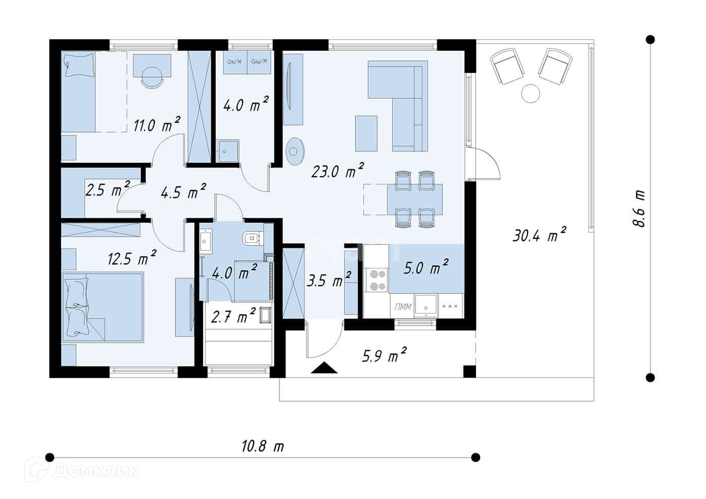 Общая площадь 84 м2