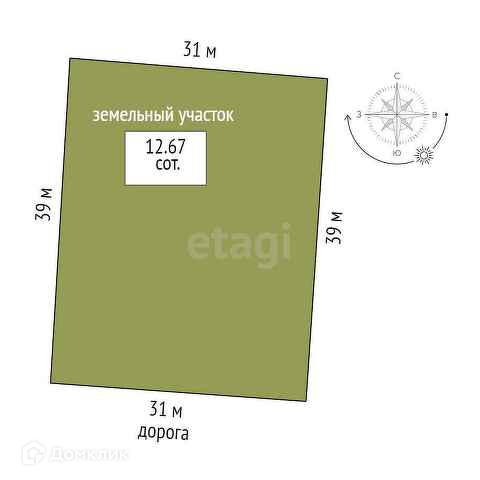 Площадь участка 12.67 сот.