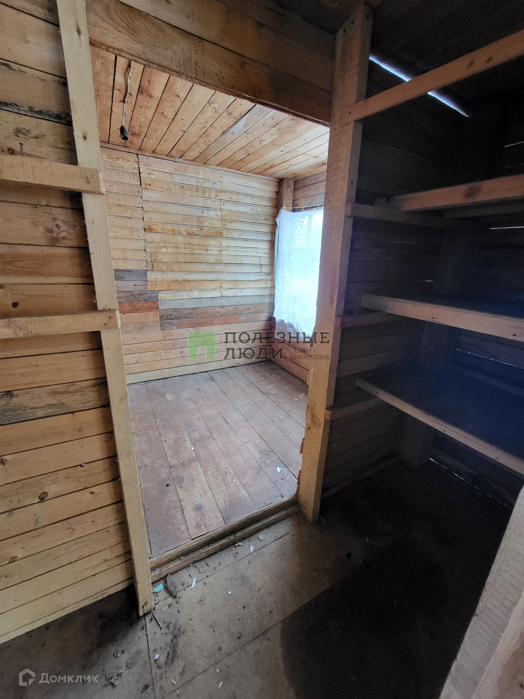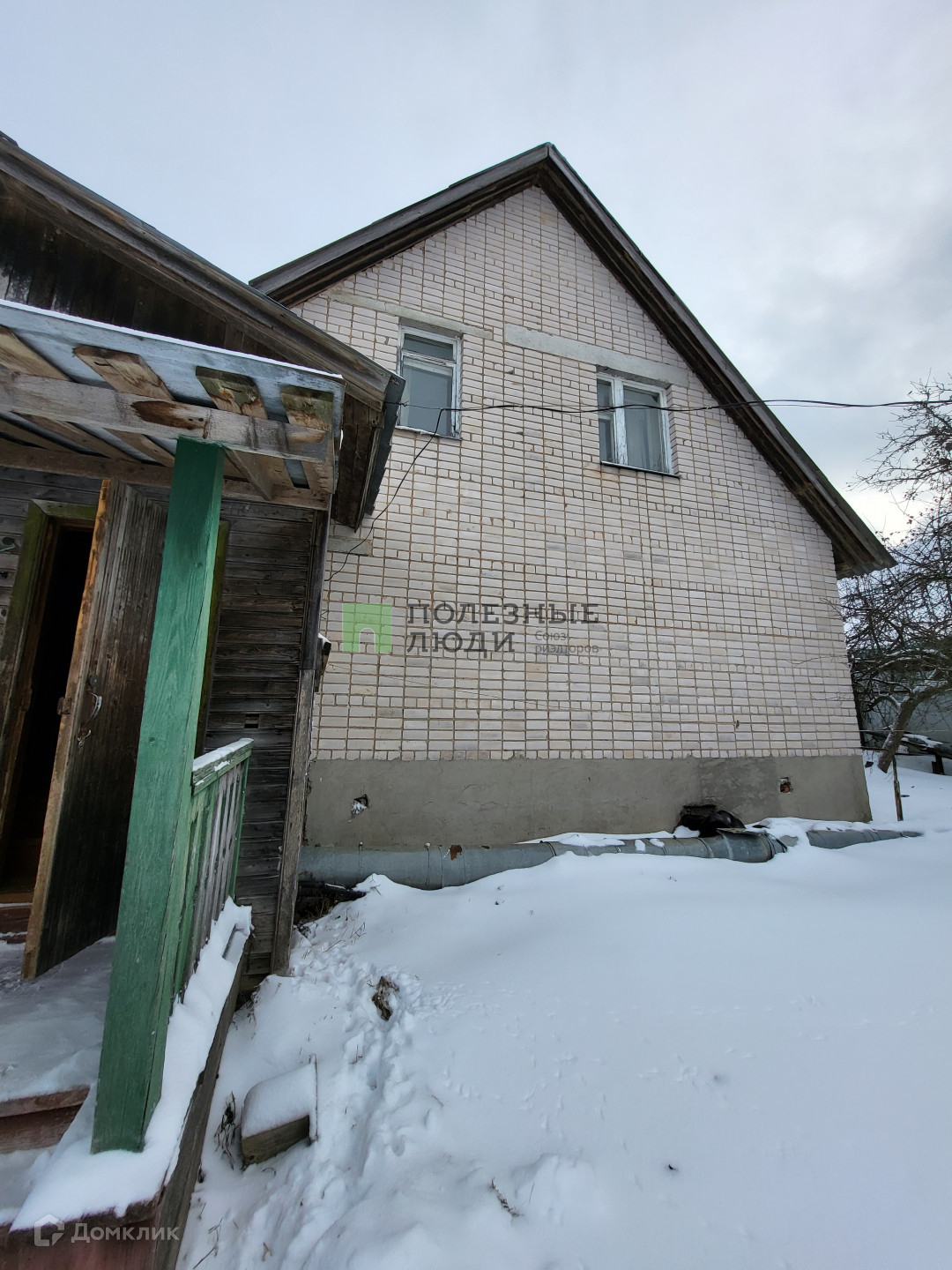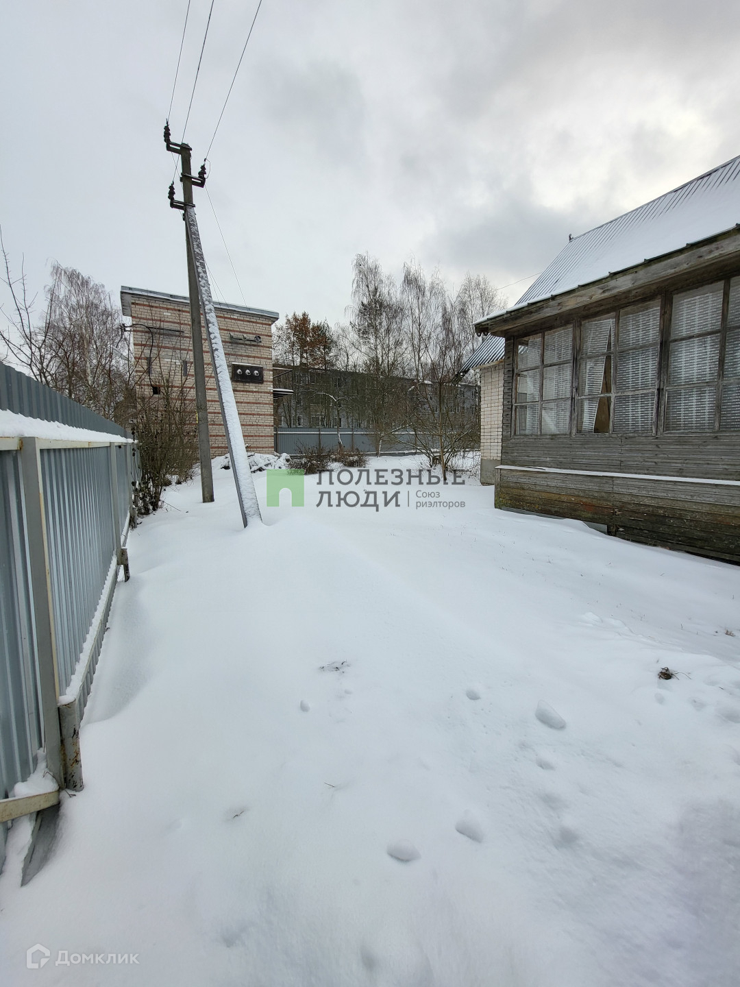 На участке есть кирпичное подсобное помещение обшитое деревом.