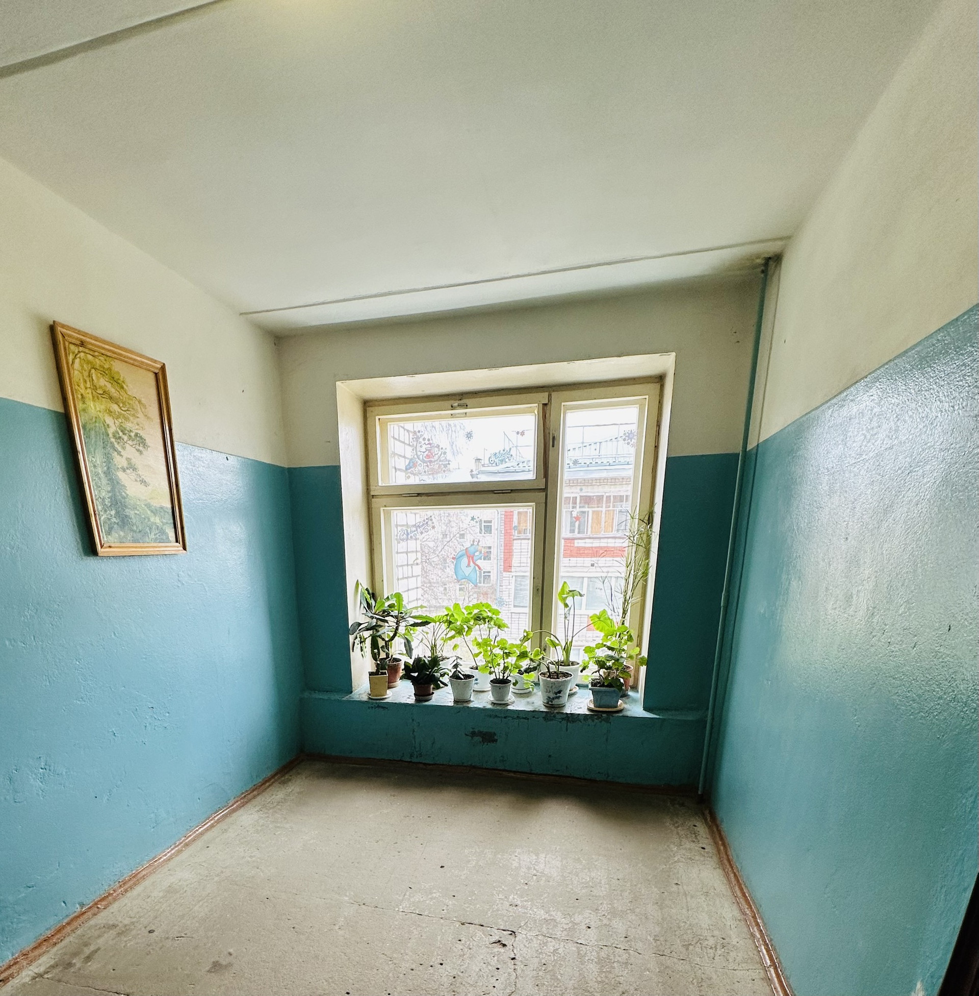 Огромный, просторный застеклённый балкон, выход на него из обеих комнат.