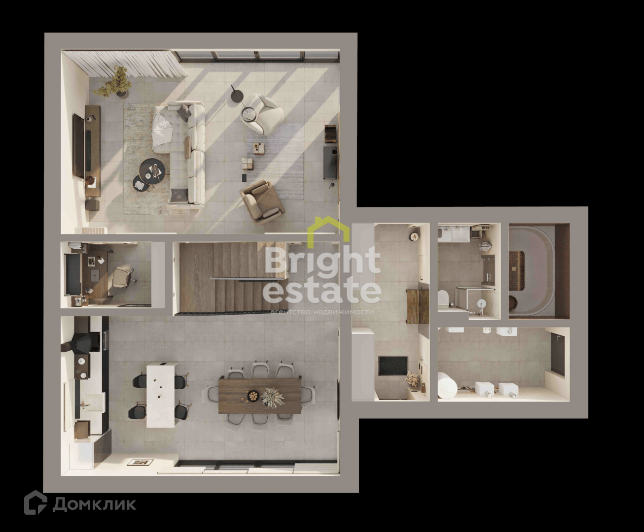 Есть три варианта внутренней отделки: White Box, чистовая отделка или чистовая отделка с мебелью, бытовой техникой и декором.