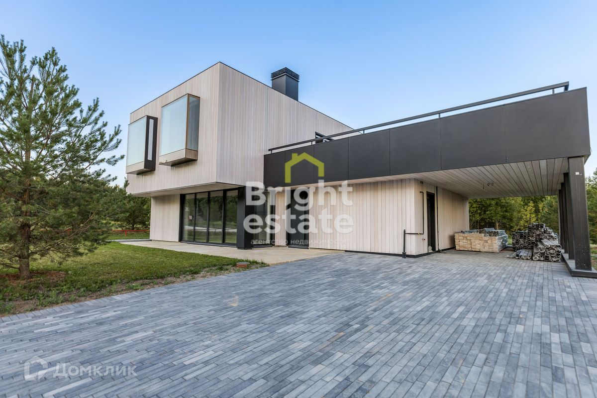 Дом в стиле немецкого минимализма, архитектурная концепция разработана компанией Qtec совместно с немецким архитектурным бюро Willen Associates Architecten. Монолитная плоская кровля с полимерной мембраной Logicroof по технологии компании Технониколь, сделана просторная терраса на крыше. Монолитные перекрытия, обеспечивающие повышенную теплоизоляцию. Фасад выполнен из натуральной лиственницы, сделана архитектурная подсветка. Фундамент – утепленная шведская плита с встроенными коммуникациями и водяным теплым полом Rehau. Высота потолков – 2,9 метров.