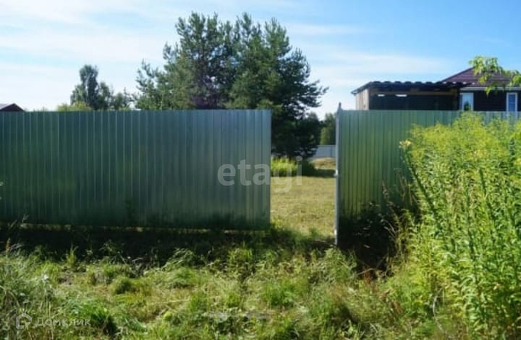 Участок огражден: Лицевая часть участка - металлопрофиль высотой 1.8м. Калитка и ворота с левой части 1.9м. С правой части 1.7м. Цвет - шоколад. Задняя часть 1,7м - оцинкованный металлопрофиль.