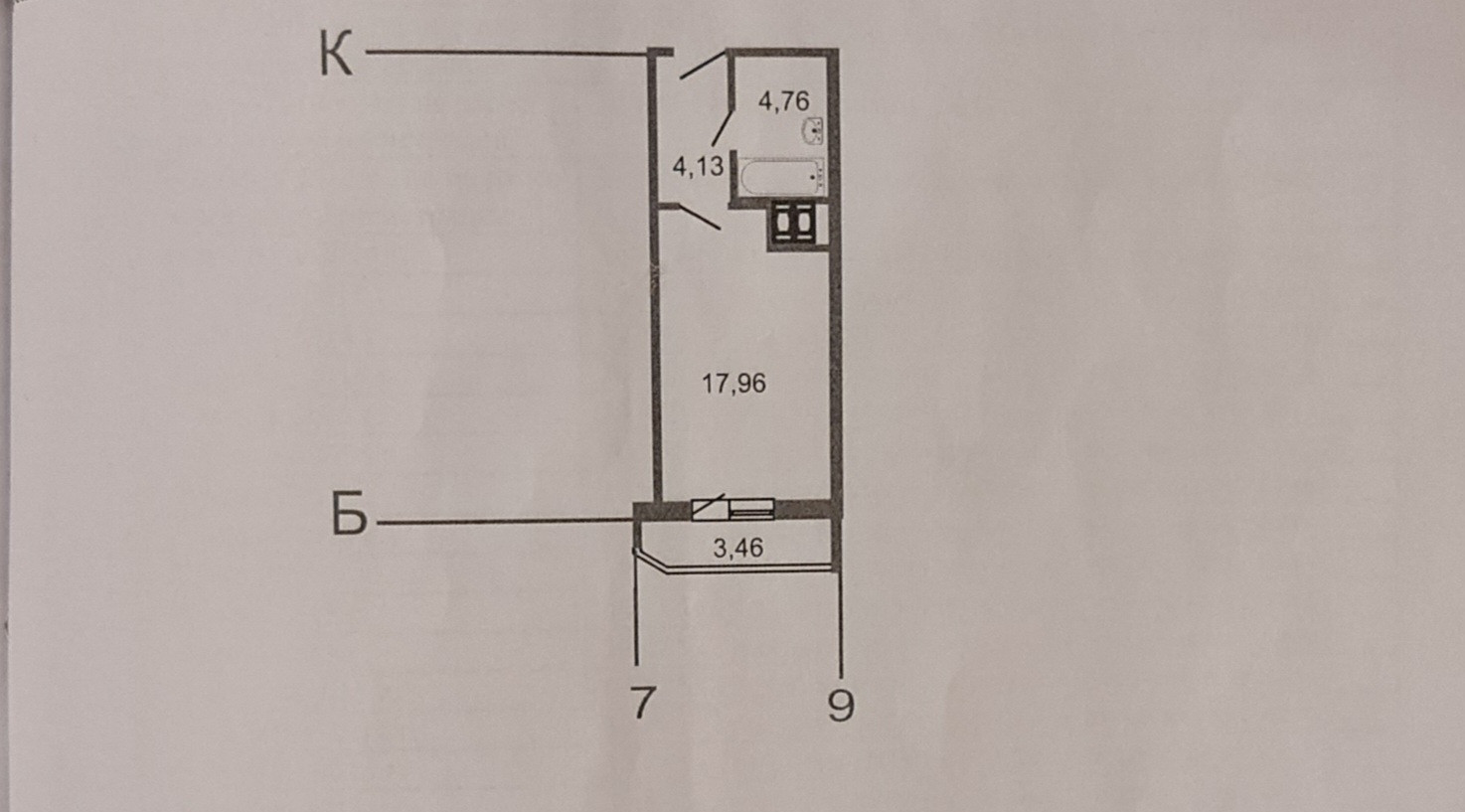 Жилая площадь 17.96 м2