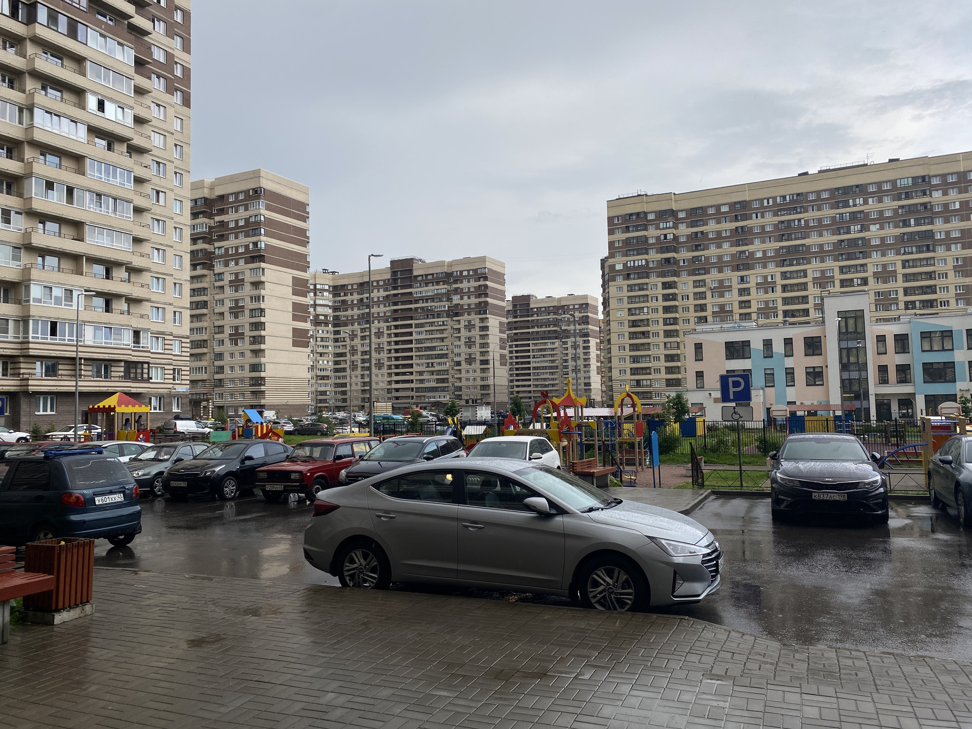 Во дворе наземная парковка и подземный паркинг.
