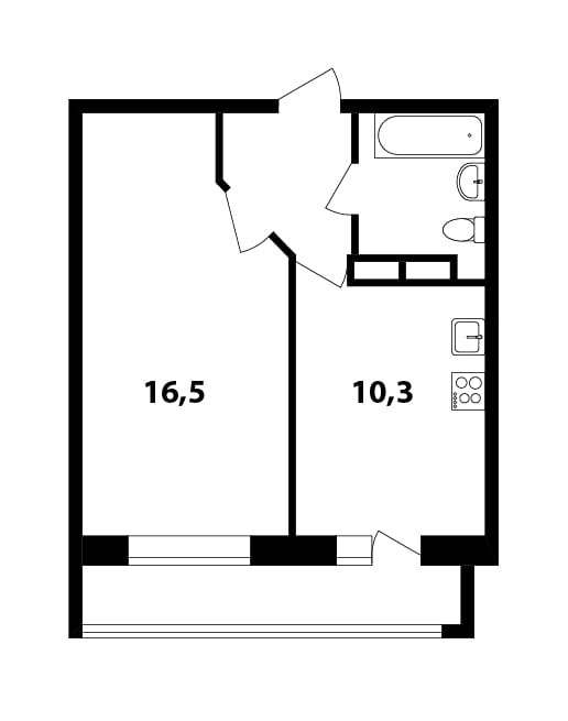 Жилая площадь 16.5 м2