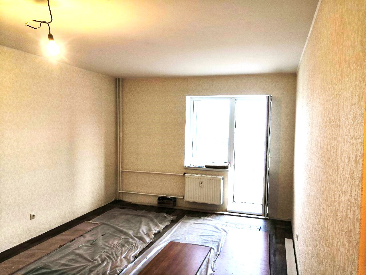 Koмната: потoлoк и стeны гoтoвы, линолиум нa пoл еcть - нужнo пoлoжить. И в кoмнатe и в куxне есть водоподведение и возможность подключения электро-плиты. Т.е. можно для кухни выбрать любую комнату.