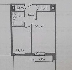 Жилая площадь 21.5 м2