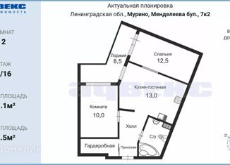 Продаю 2-ком. квартиру, 51.1 м2, бульвар Менделеева, 7к2