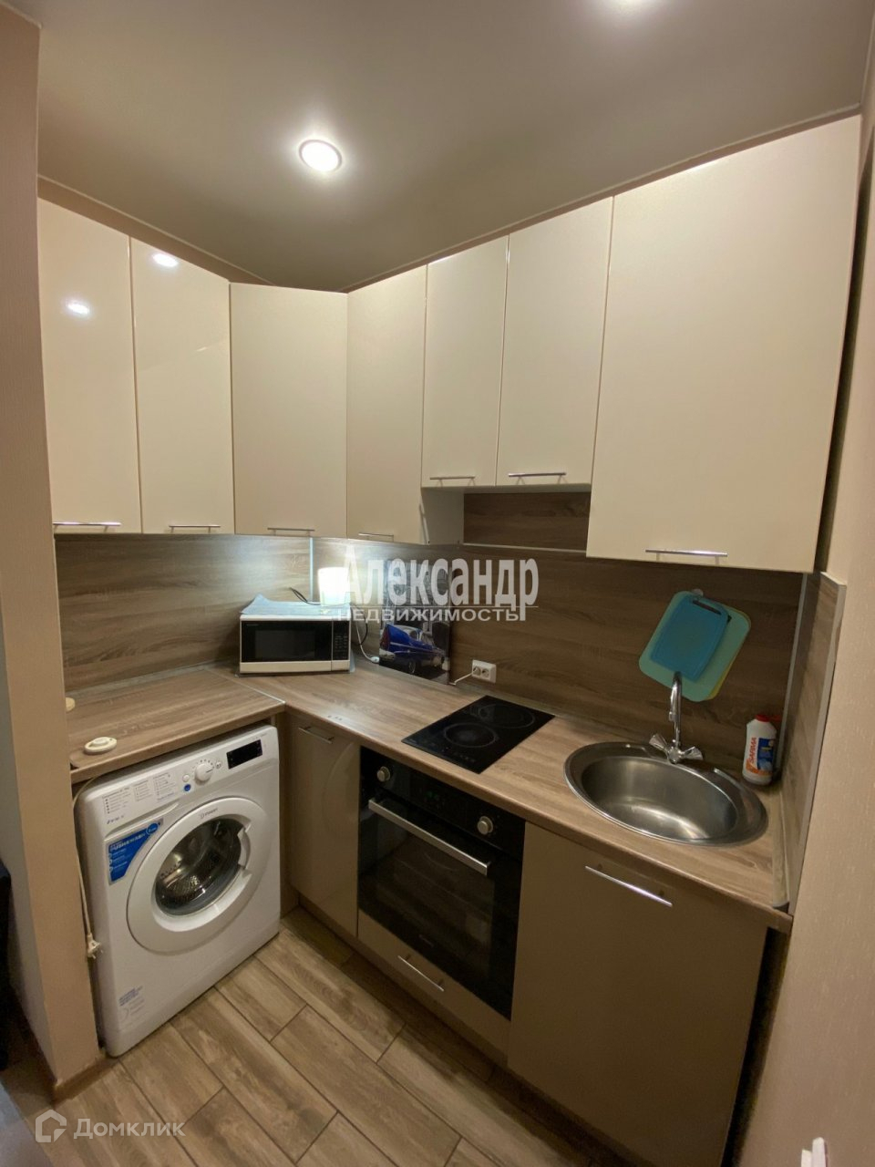 Квартира зонирована на комнату и кухню. В квартире есть все для комфортного проживания - диван двуспальный, обеденный стол и шкаф для одежды. На кухне - варочная панель, духовой шкаф, вытяжка, стиральная машина.