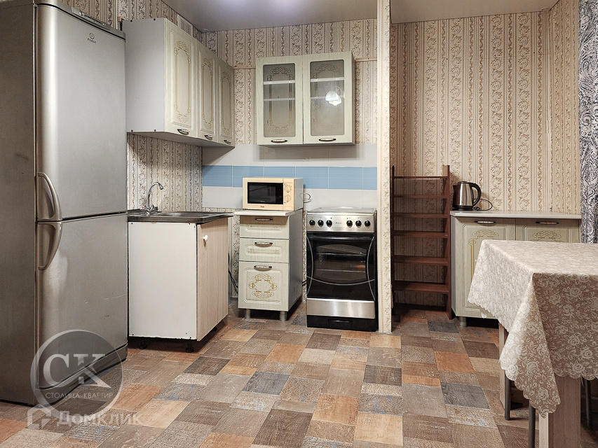•    Квартира оборудована кухонной мебелью и техникой.