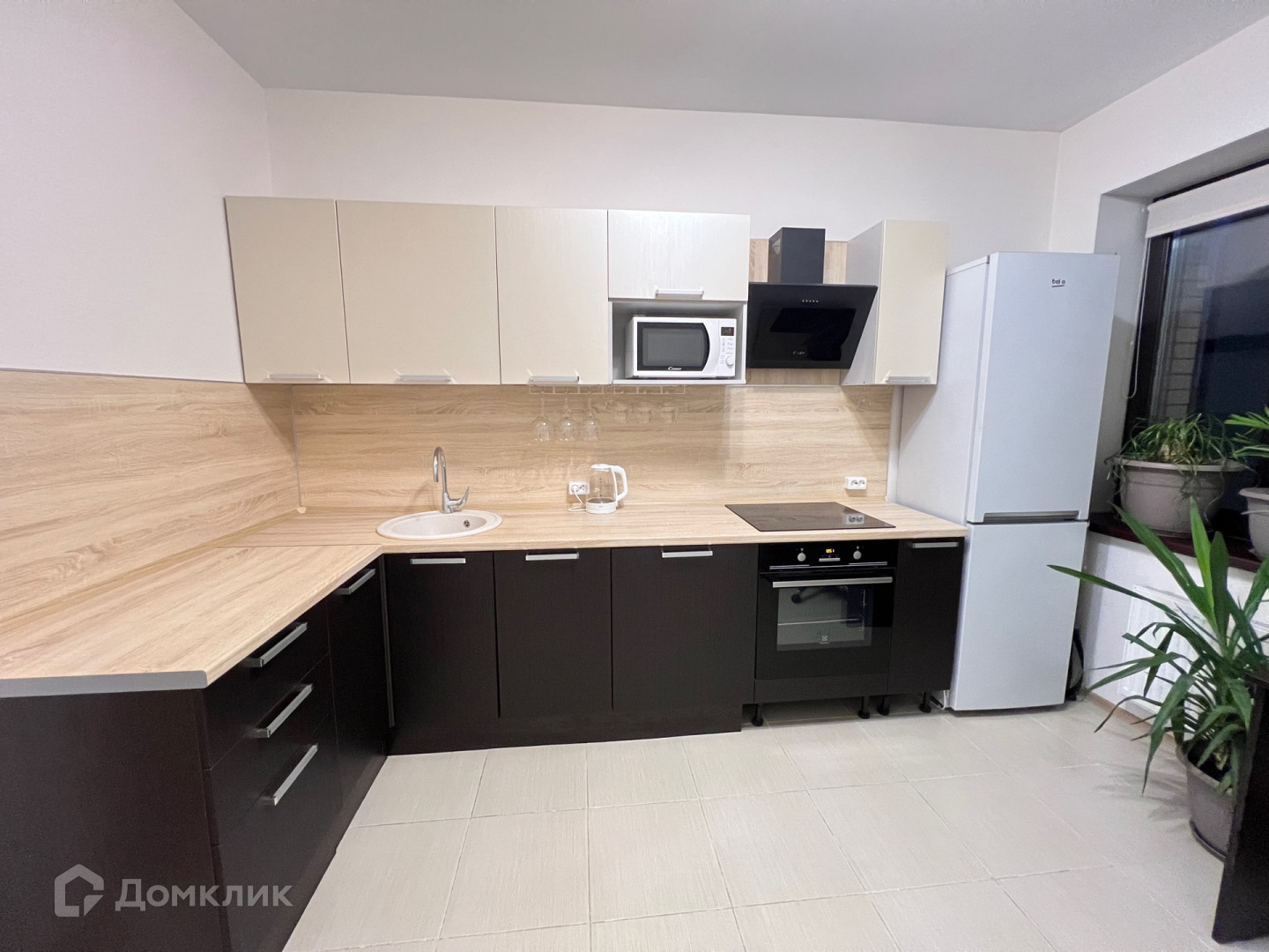 духовка, микровонолновка, современная варочная панель, холодильник;