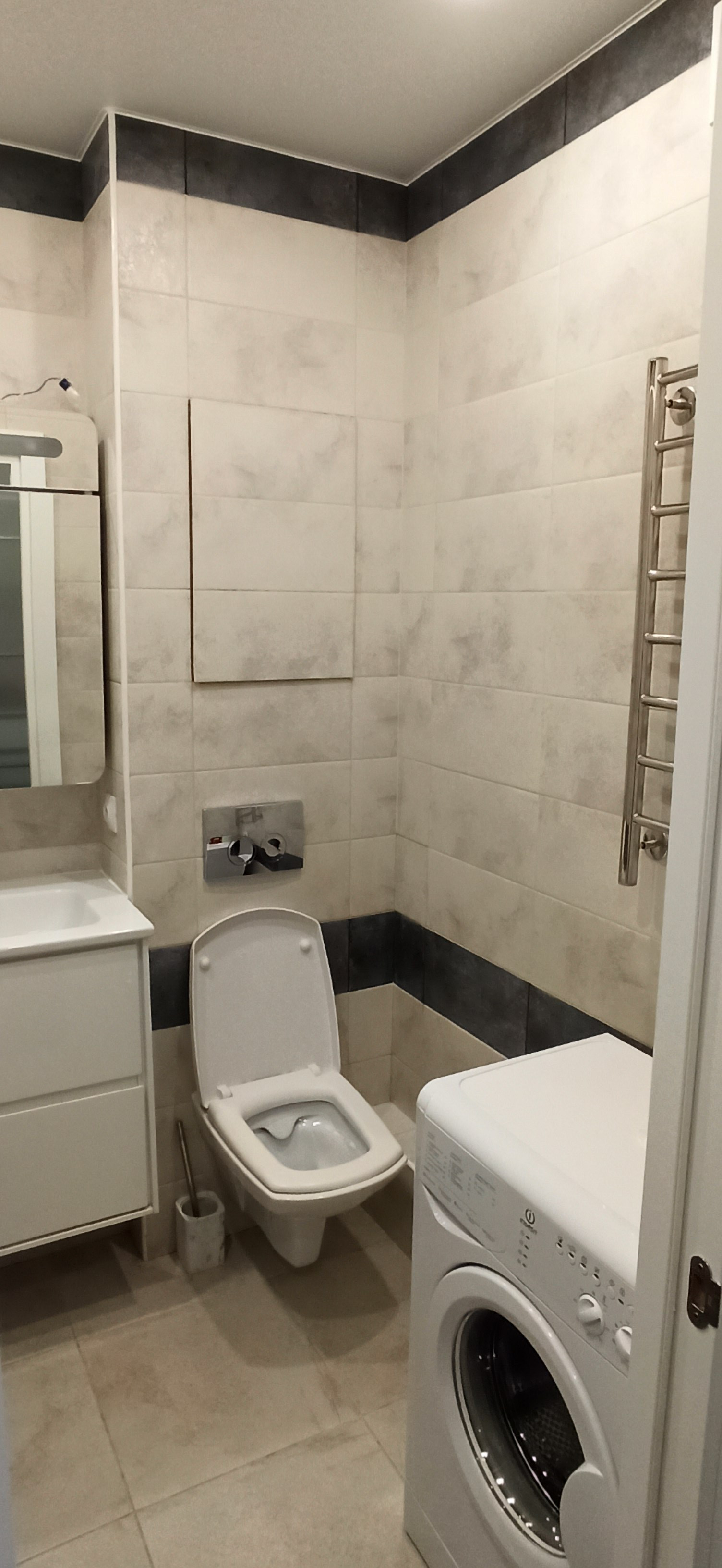 В ванной тропический душ, сушилка на 8 секций с регулировкой температуры, теплые полы, при необходимости вентилятор на вытяжке