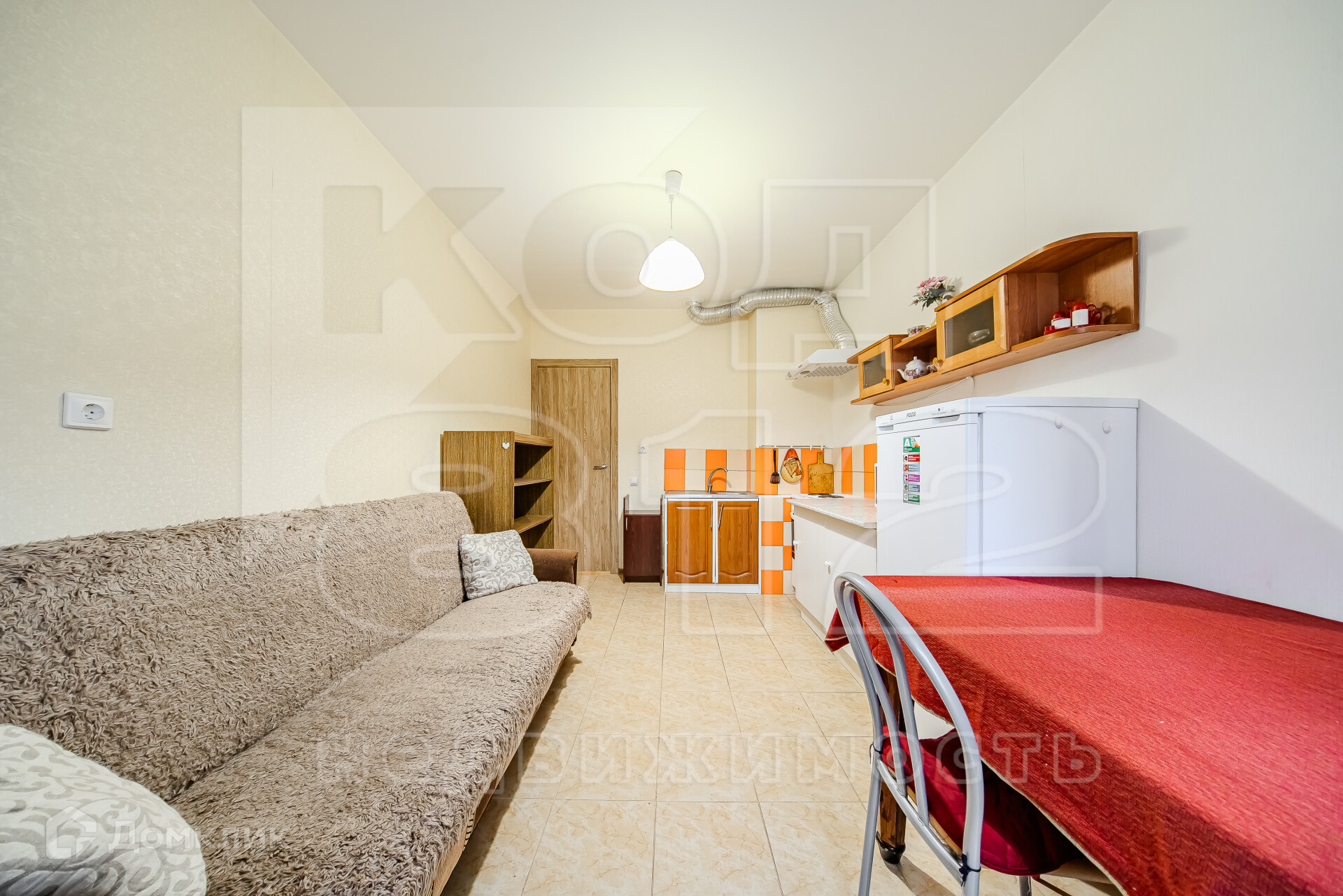 Высокий первый этаж (никто не заглядывает в окна). Просторная прихожая. Есть вся необходимая мебель.