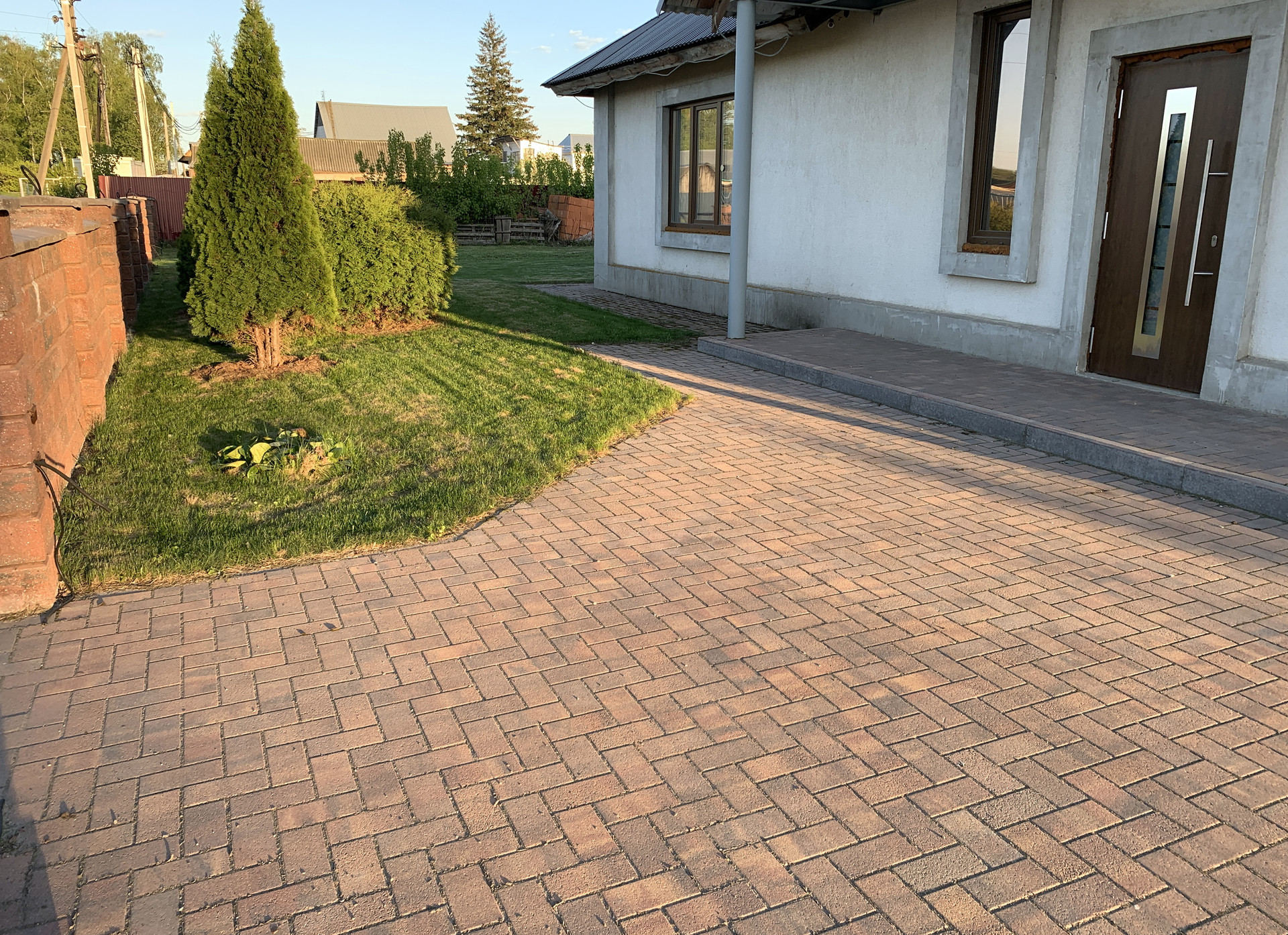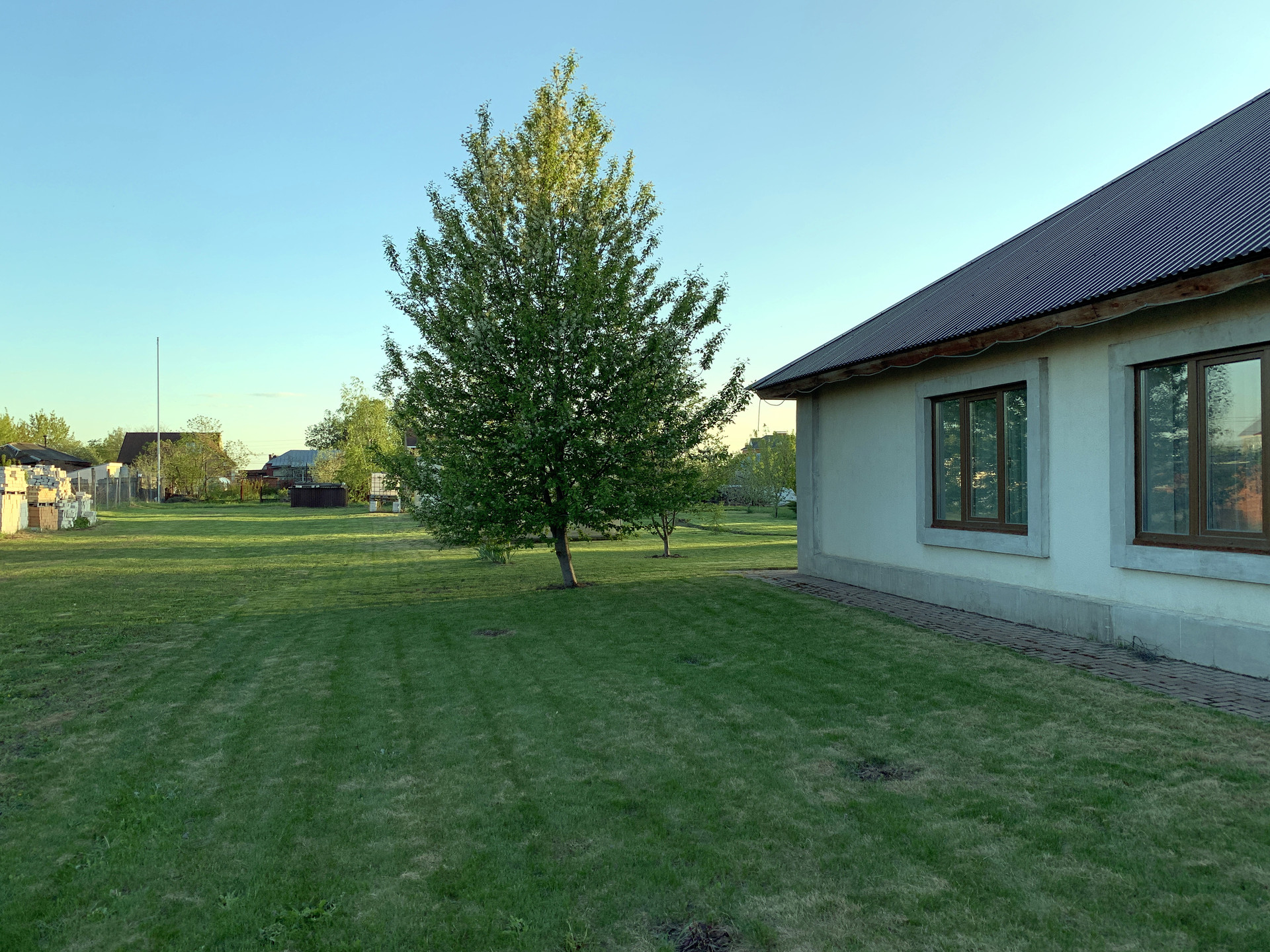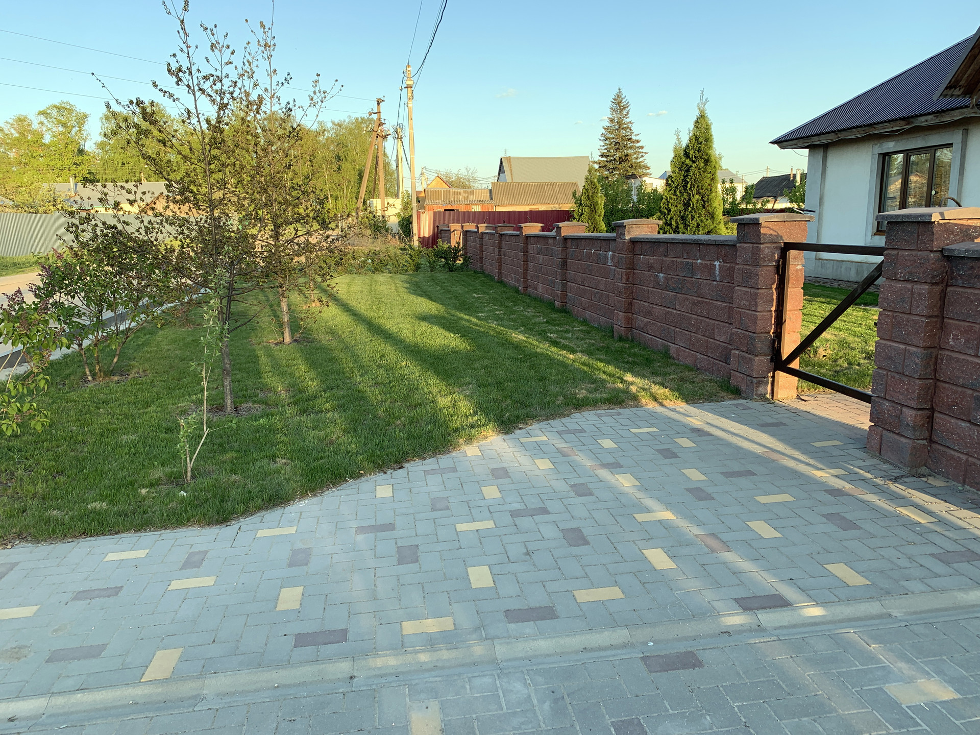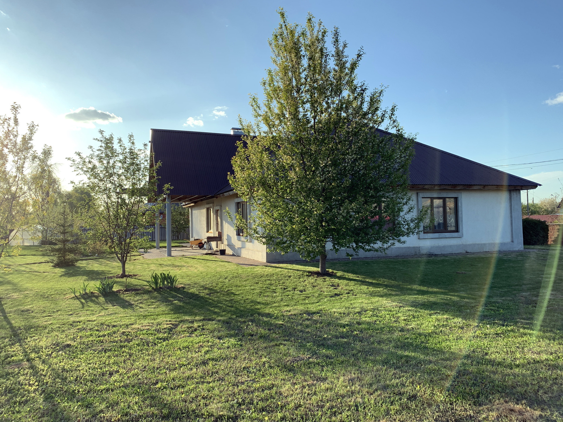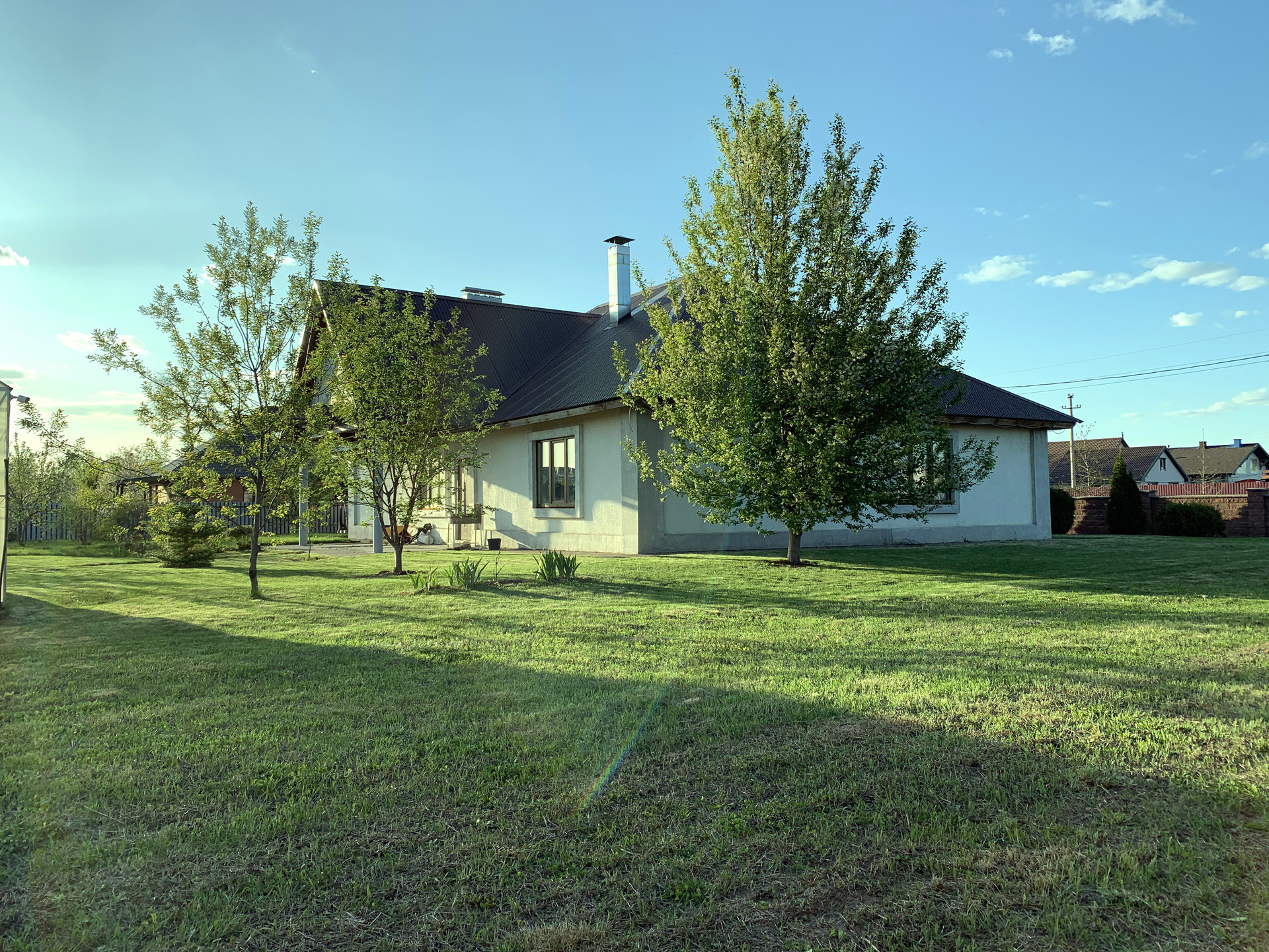 В усадьбе более 20 соток благоустроенного сада, газонная трава мятлик/овсянница/клевер, ландшафтный дизайн, по участку разведены ПНД трубы для системы автоматического полива и электричество. Кроме декоративных растений, таких как Туи, Дубы, Можжевельник, Пихта, Лаванда, в саду растут плодовые деревья и кустарники: Рябина сортовая 2шт, Вишня 3шт, Яблони 6шт, Груша 1шт, Черешни 2шт, Красная Черемуха 1шт, Ирга 2шт, Барбарис 1шт, Черноплодная Рябина 1 куст, Калина 2 куста, Белая и красная ремонтантная малина, ежевика и много другое. Фасадный забор из колотого камня, подъезд к дому, тропинки и машино-места благоустроены тротуарной плиткой.