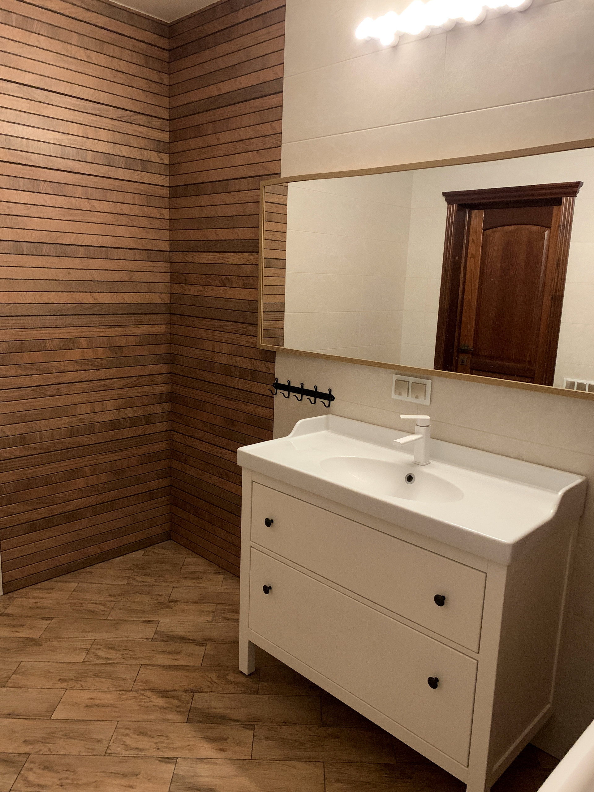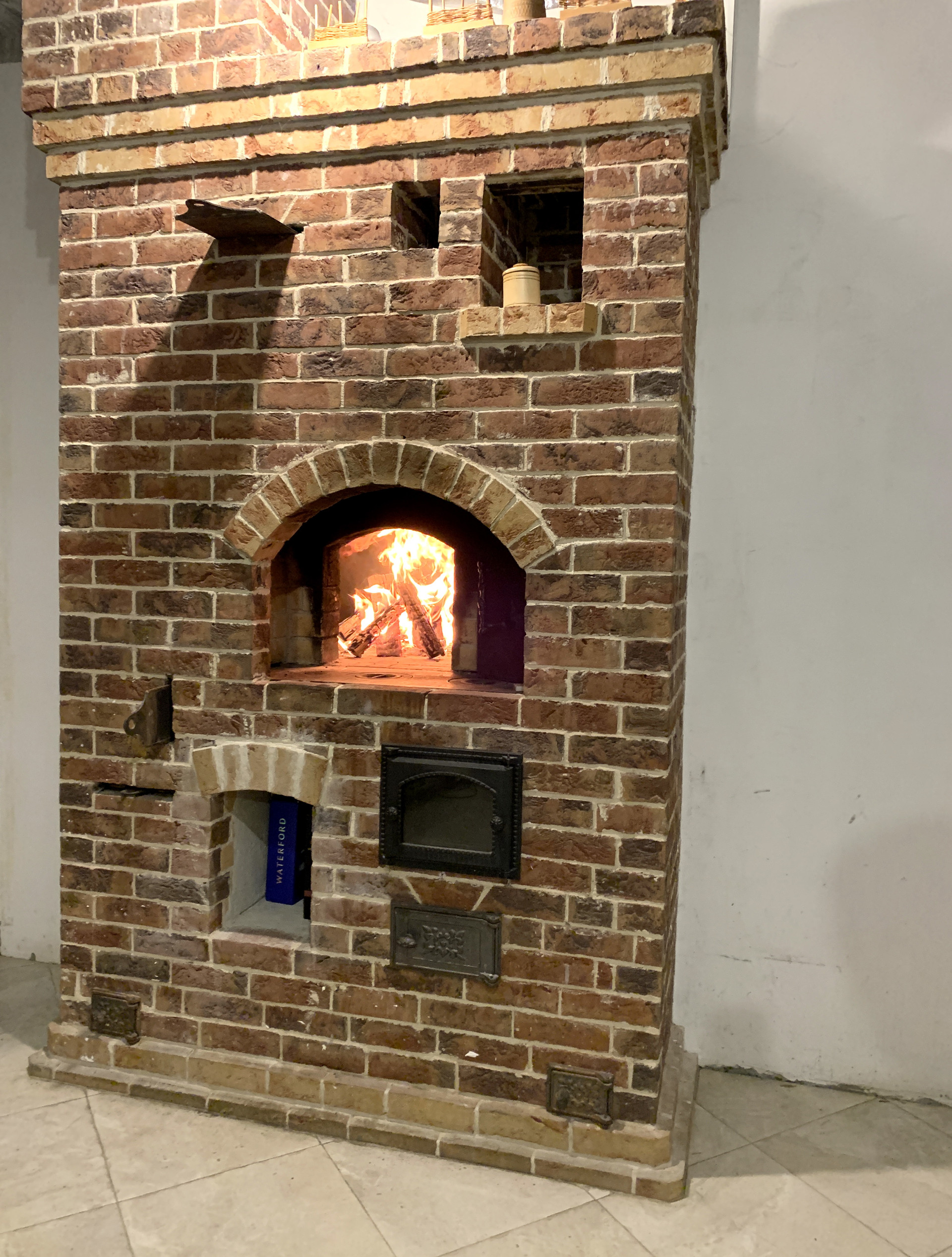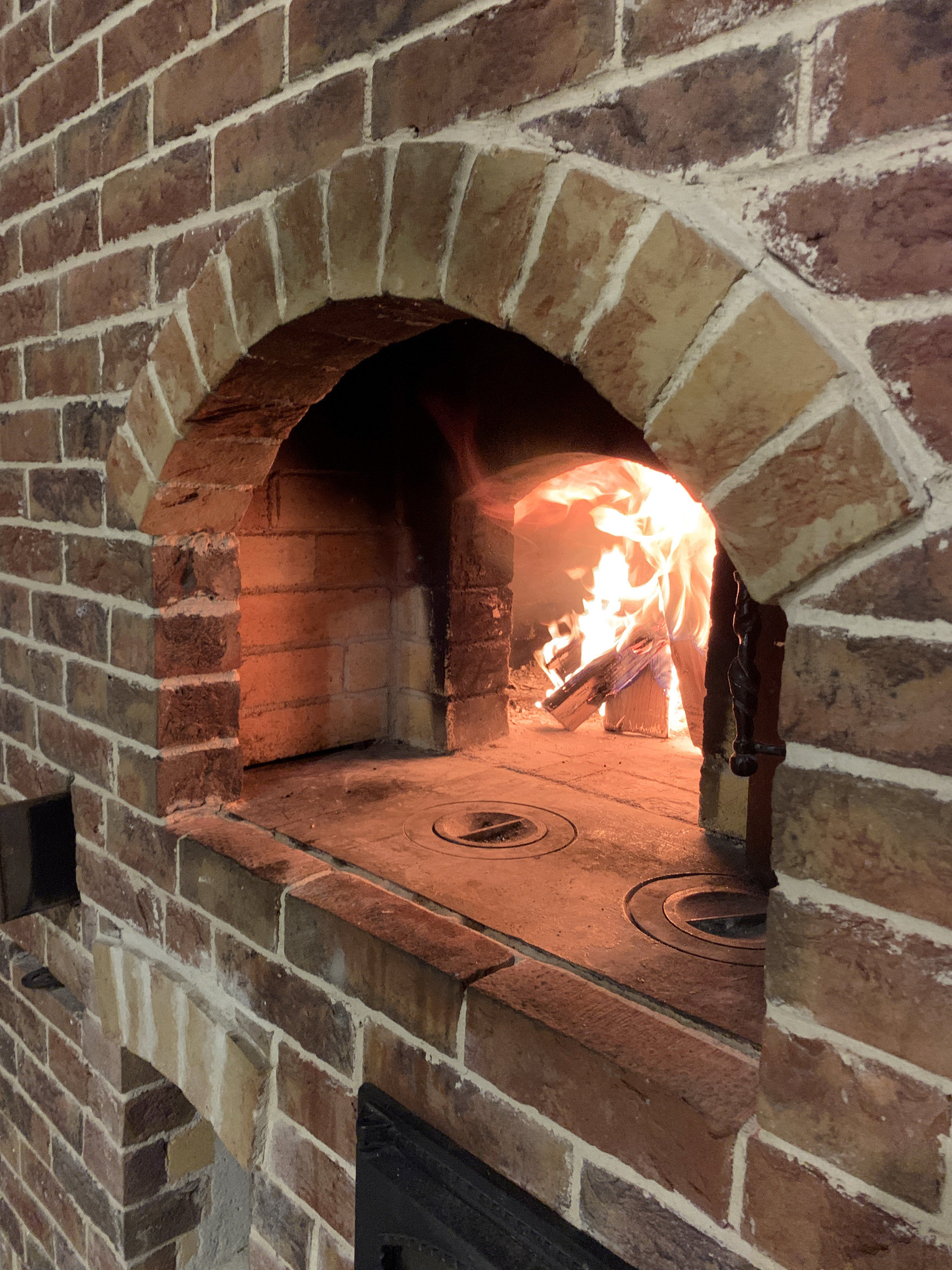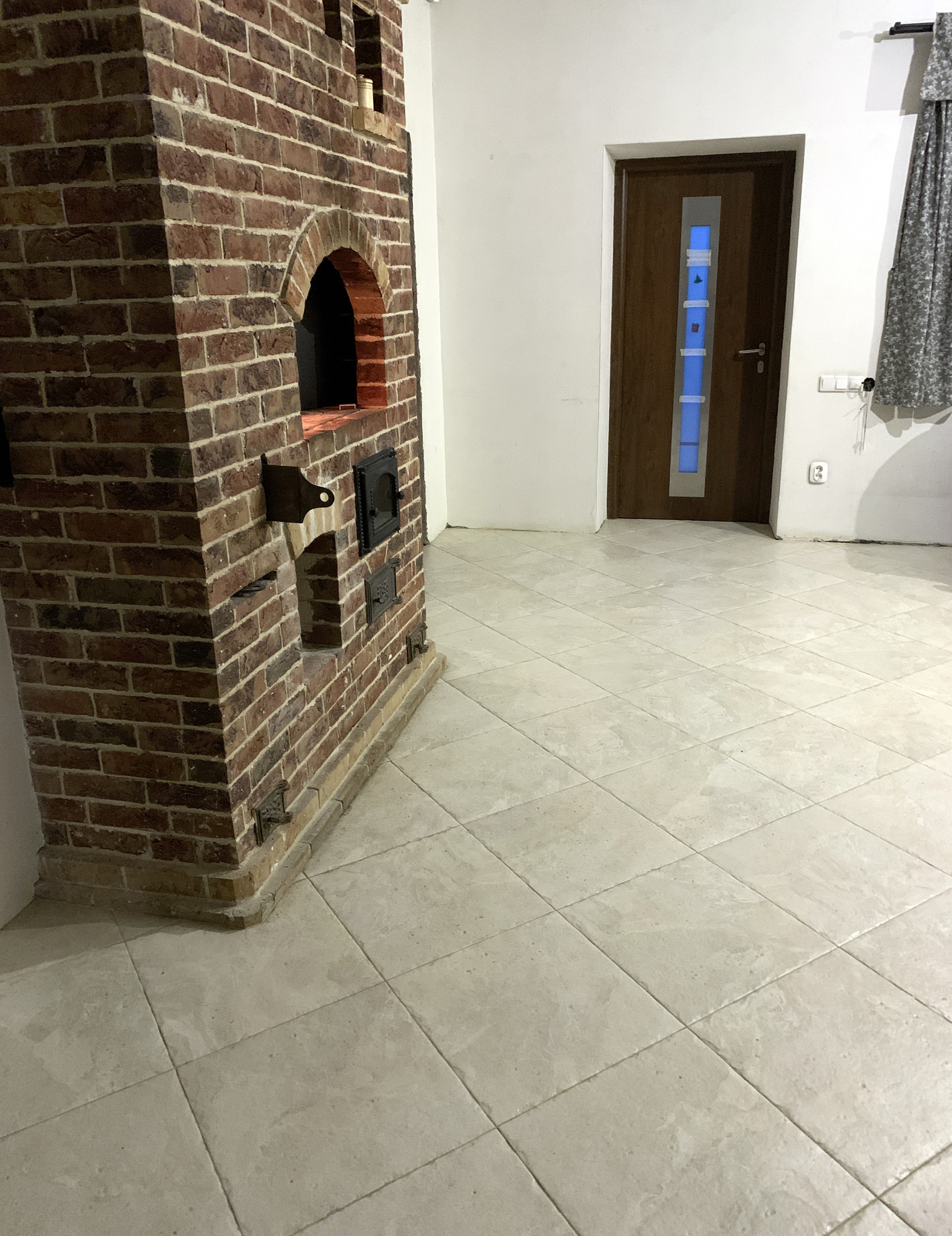В центре дома, лицом в кухню-столовую, построена Русская печь с горнилом и уютной лежанкой в спальных комнатах. Облицовочный кирпич печи - ручной формовки Milano WFD Terca, Бельгия. Выход в сад проходит через благоустроенную террасу.