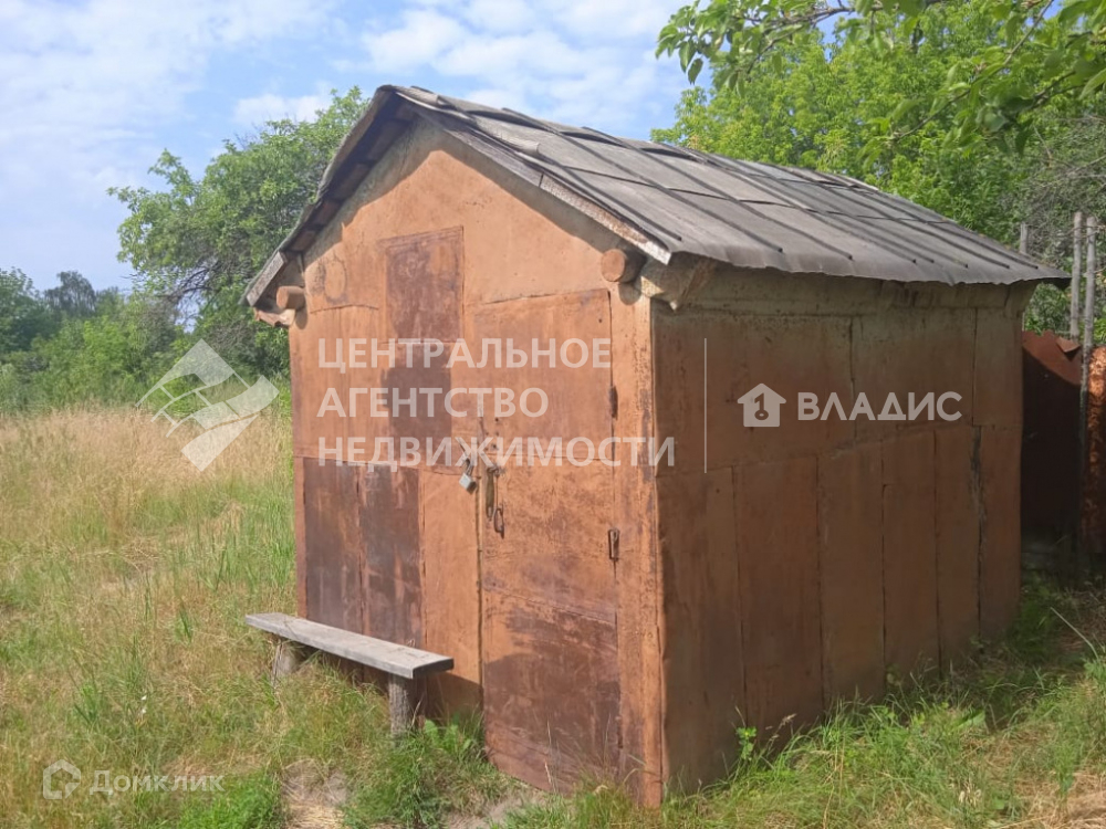 На участке есть деревянный, добротный сарайчик.