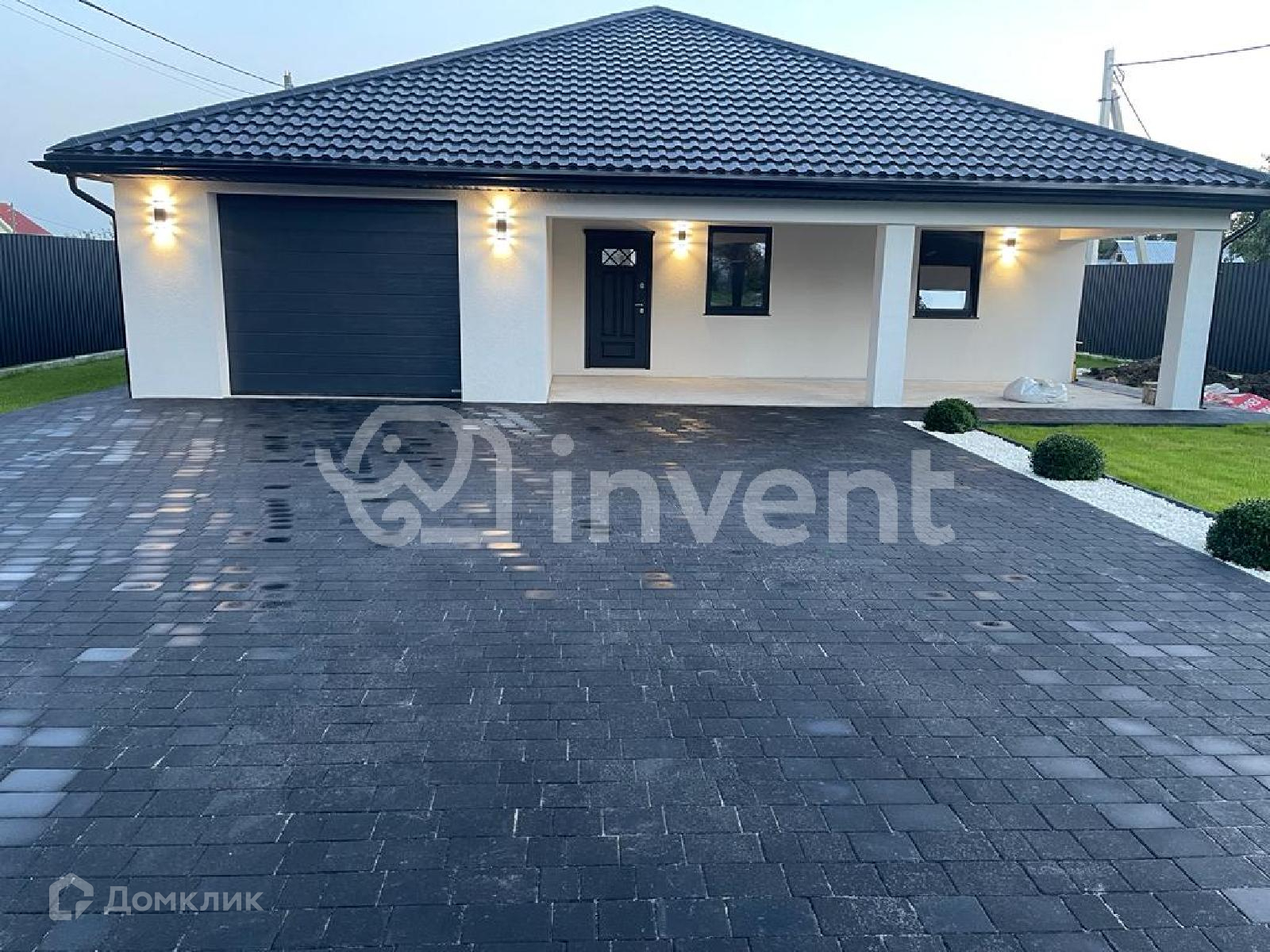 На территории дома выполнен ландшафтный дизайн, въезд для машины выложен тротуарной плиткой.