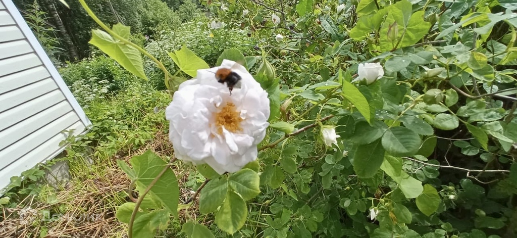 На участке много ягодных кустов - красная и черная смородина , крыжовник, жимолость, облепиха и плодовые деревья - яблони, слива желтая и пара синих. Садовые красивые кустарники и цветы - флоксы роскошные многолетние, чебушник и жасмин.