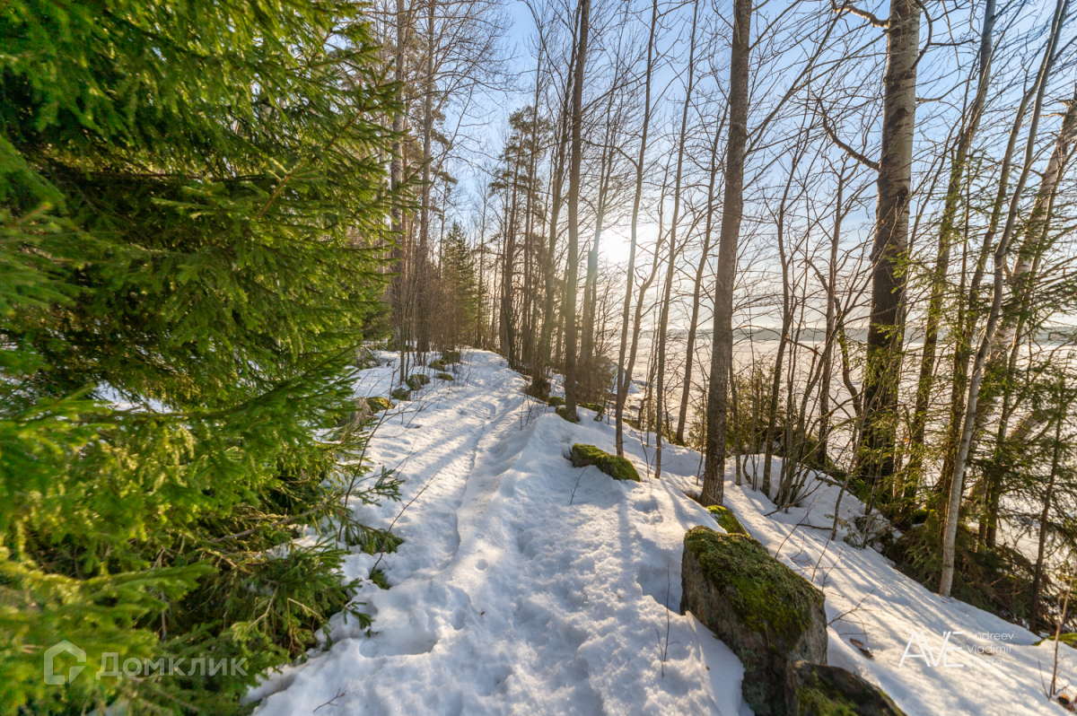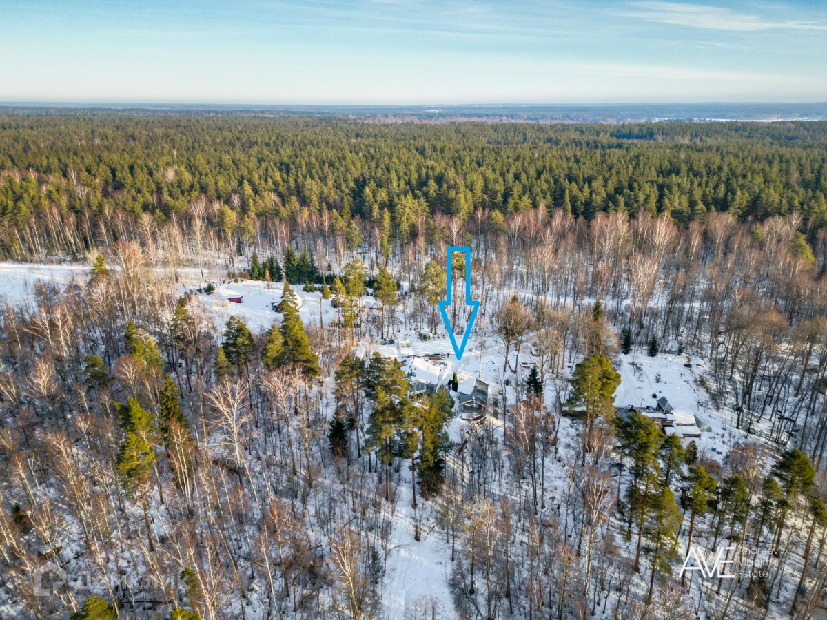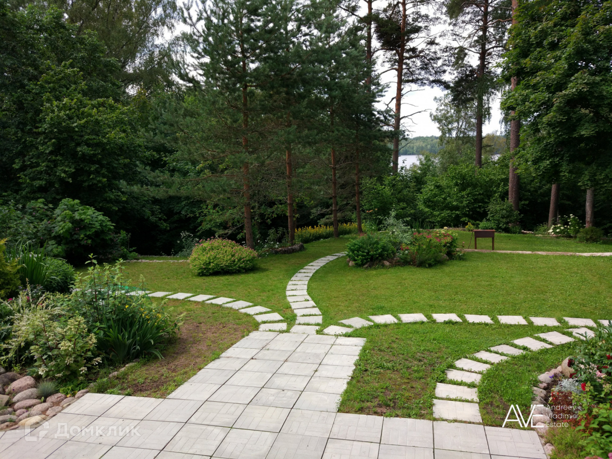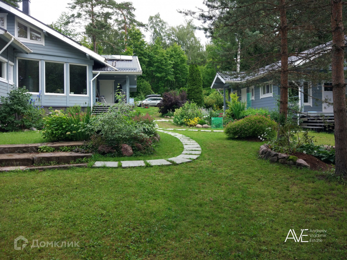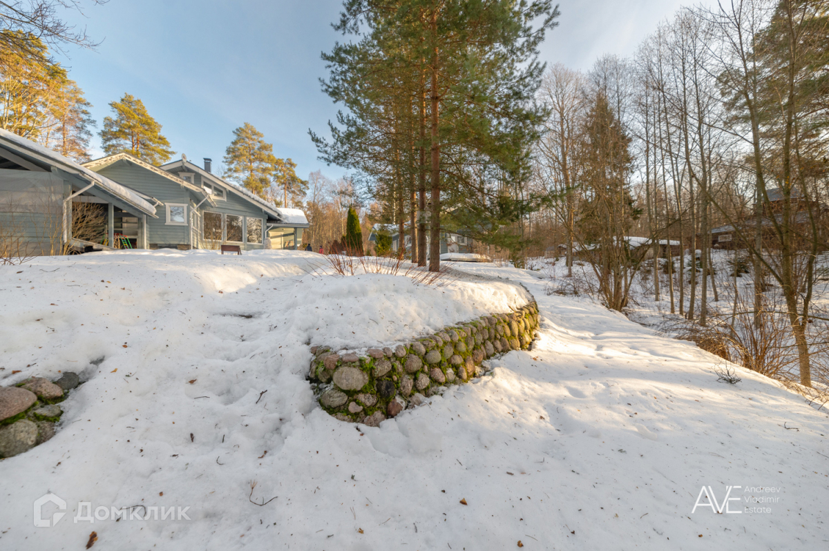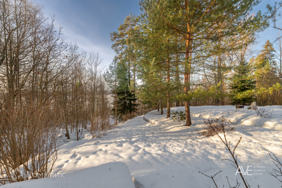 Участок, на котором расположен дом, имеет площадь 20 соток и окружен землями лесного фонда Ленинградской области, что обеспечивает фактическую площадь около 50 соток. На территории участка представлена смешанная растительность, включающая хвойные, лиственные и плодовые деревья, а также кустарники. Здесь также выполнен ландшафтный дизайн и установлен дренаж.