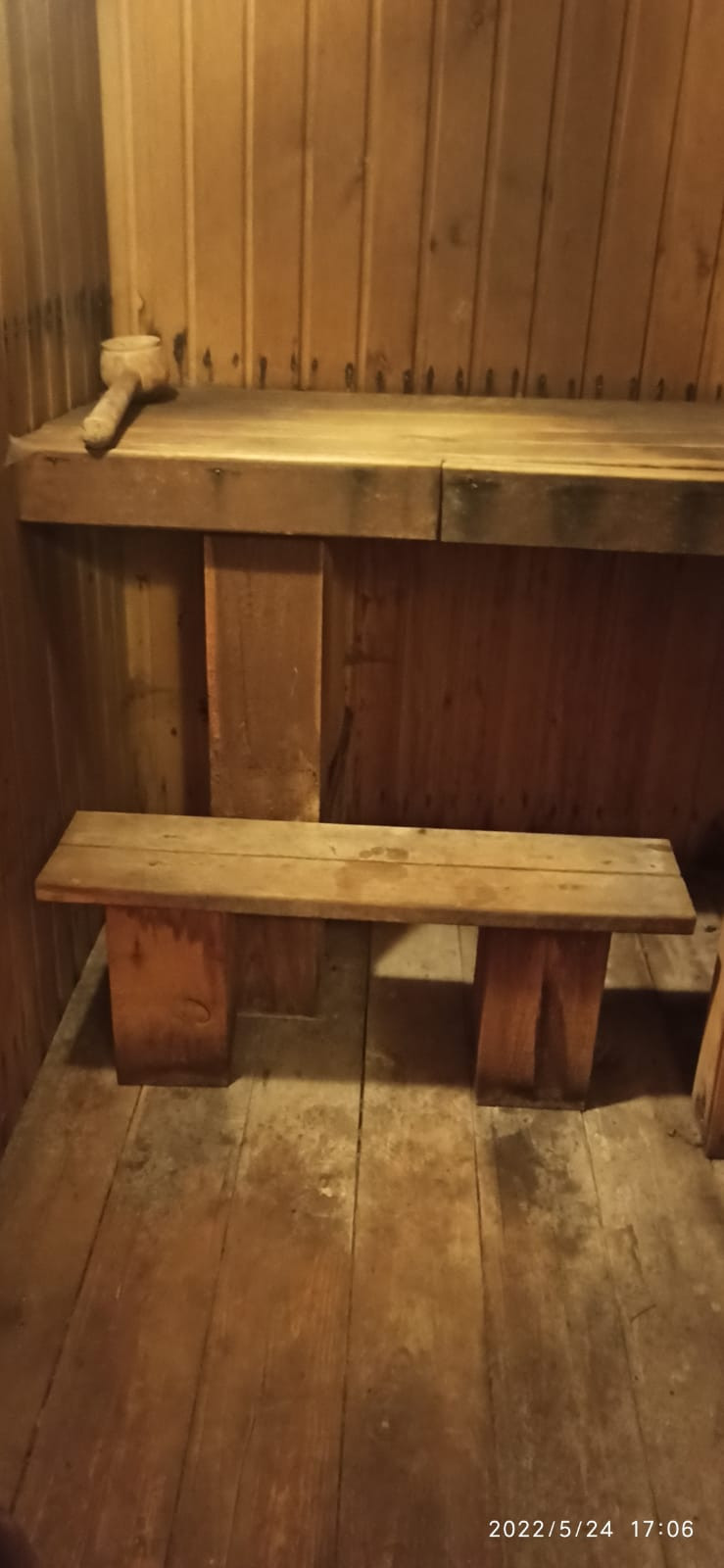 Стены рубленные из брёвна диаметром 220 мм, обложен кирпичом, часть шлакоблочный.