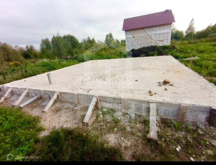 На участке расположен фундамент-платформа 8Х8м. под кирпичный добротный дом. Все документы на работы есть у собственника. Под гараж также есть фундамент с основанием 3Х5 м. Подъезд к участку отсыпан и сделана дорога.  Рядом с участком электрический столб, газофикация в очень близкой перспективе.