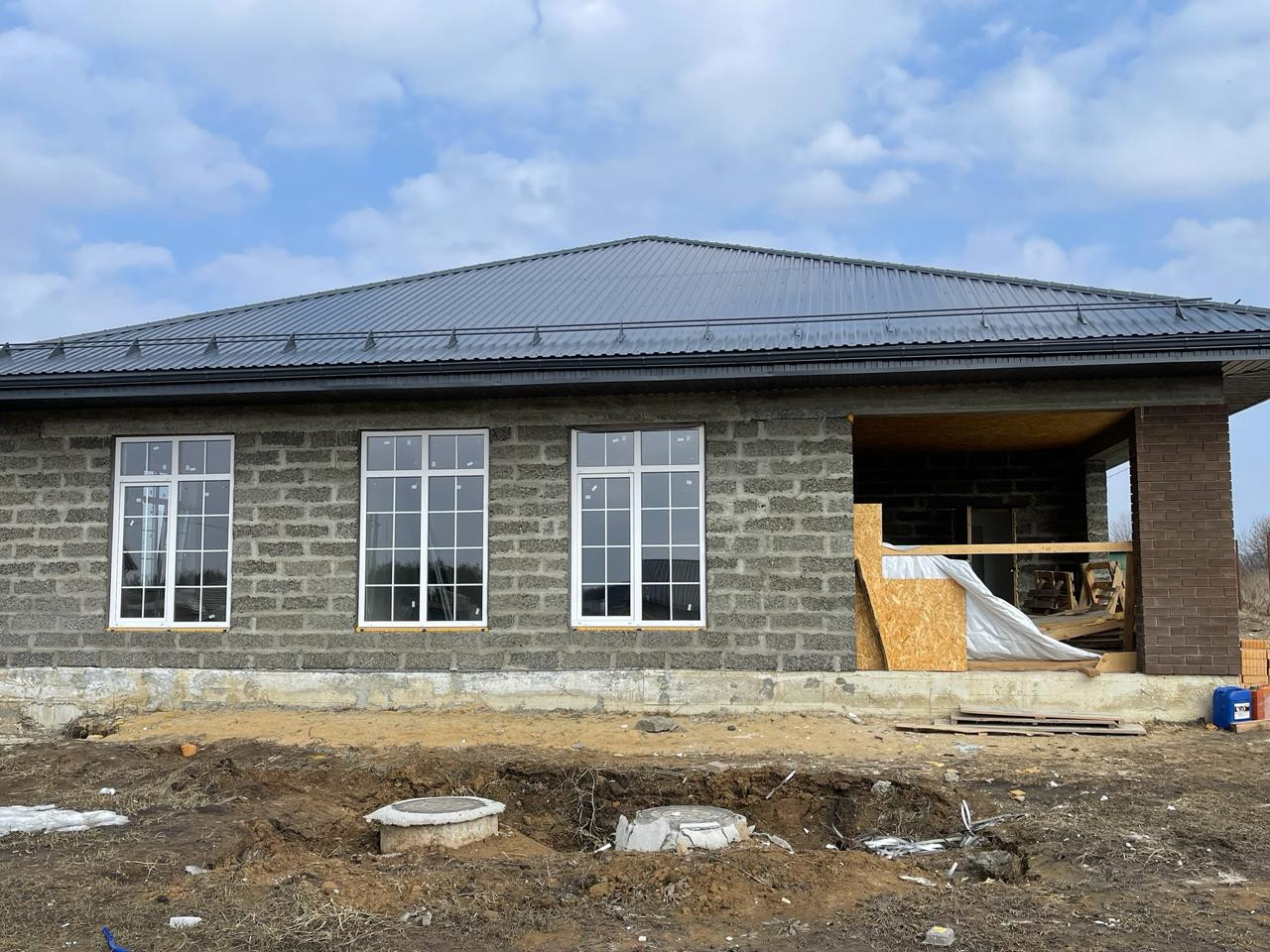 Продается новый современный дом общей площадью 168,2 кв м в пос. Надежда (13 км до Орла). Материал стен - арболитовый блок. Преимущества арболитовых блоков: экологичность, пожаростойкость, простота обработки, высокая паропроницаемость, биостойкость, минимальная усадка, высокие тепло-, звукоизоляционные характеристики. АРБОЛИТ утеплять не нужно, точка росы в однослойных конструкциях не рассчитывается, не надо никаких ППУ. Внутренняя отделка дома: предчистовая. Бетонная стяжка - под теплый пол. Окна ПВХ по энергосберегающей технологии, профили на 70. Собственная скважина с чистой водой. Канализация автономная состоит из двух выгребных ям с переливом.  Земельный участок площадью 10 соток, в собственности.