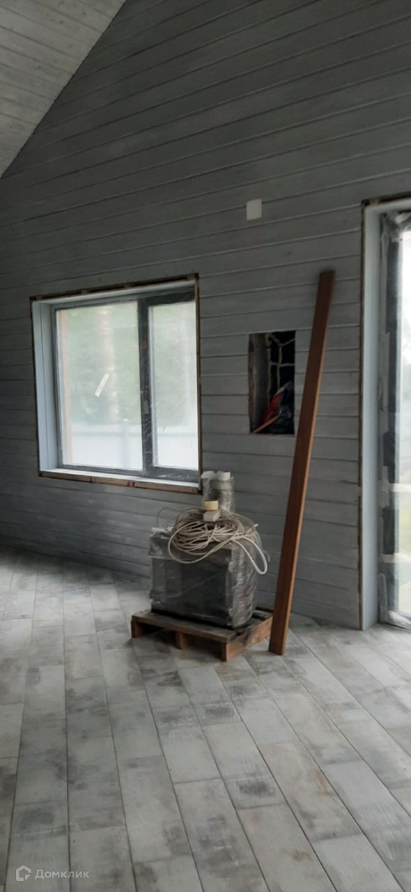 На первом этаже расположена кухня-гостиная, санузел с сауной. Подготовлено место и дымоходы для подключения камина. Есть проект кухонного гарнитура. На вором этаже расположена спальня. Второй этаж обогревается водяными радиаторами. Дом подключен к электричеству 15 кВт скважина 100 метров, септик.