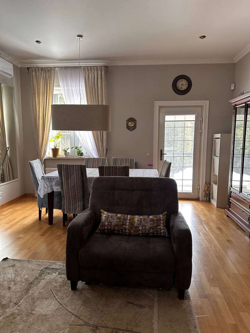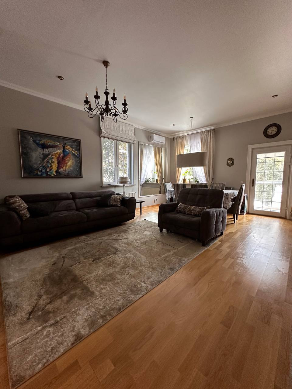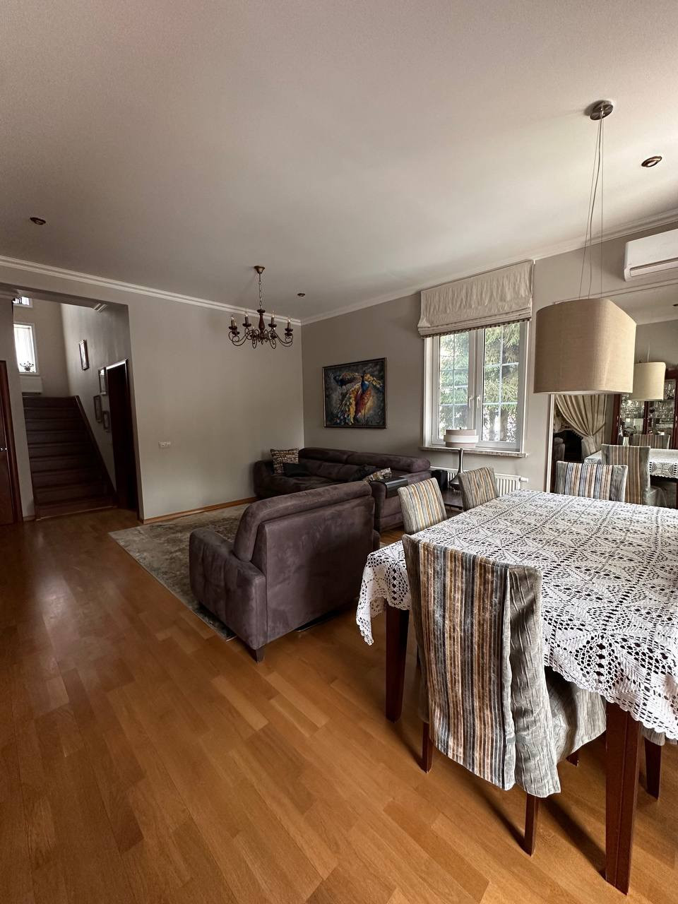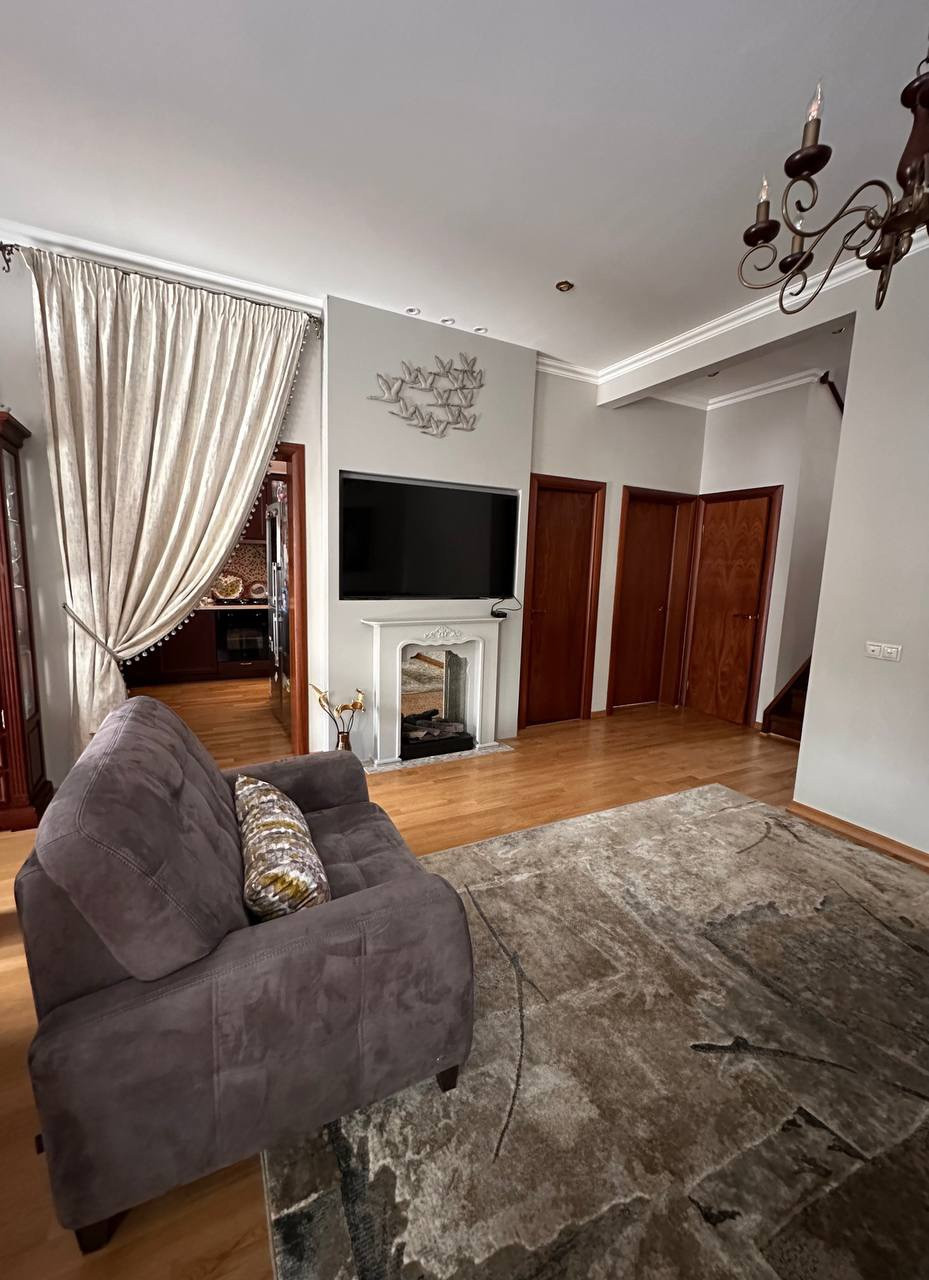 Вашему вниманию предлагается Таунхаус (Дуплекс) площадью 135 кв.м  с участком 5,3 соток полностью готовый к заселению. 1 этаж: гостинная, кухня, прихожая, гостевая комната, терраса, бойлерная и кладовая. 2 этаж: спальня с гардеробной, ванная с сауной и две комнаты. В каждой комнате установлен кондиционер, в спальне на 2м этаже и гостевой комнате на 1м этаже установлены рекуператоры воздуха. БОльшая часть мебели и встраиваемая техника остаются (посудомоечная машина Mielle, микроволновая печь Bosch и духовой шкаф с варочной панелью Ariston). Терраса и главное крыльцо выложены гранитом, на террасе установлены электрожалюзи для всесезонного использования. Материал стен: каркасник обложенный кирпичом.  На участке с проработанным ландшафтном дизайном расположено большое количество хвойных растений (более 10 больших красивейших елей, живая изгородь из туй итд) а также: декоративный кустарник, клён, клумбы с цветами и др.растения.