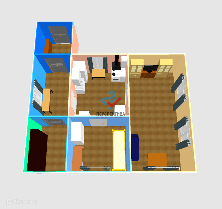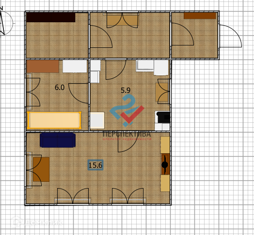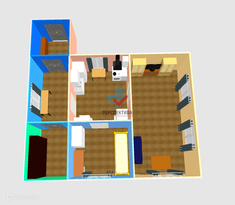 Жилая площадь 21.6 м2