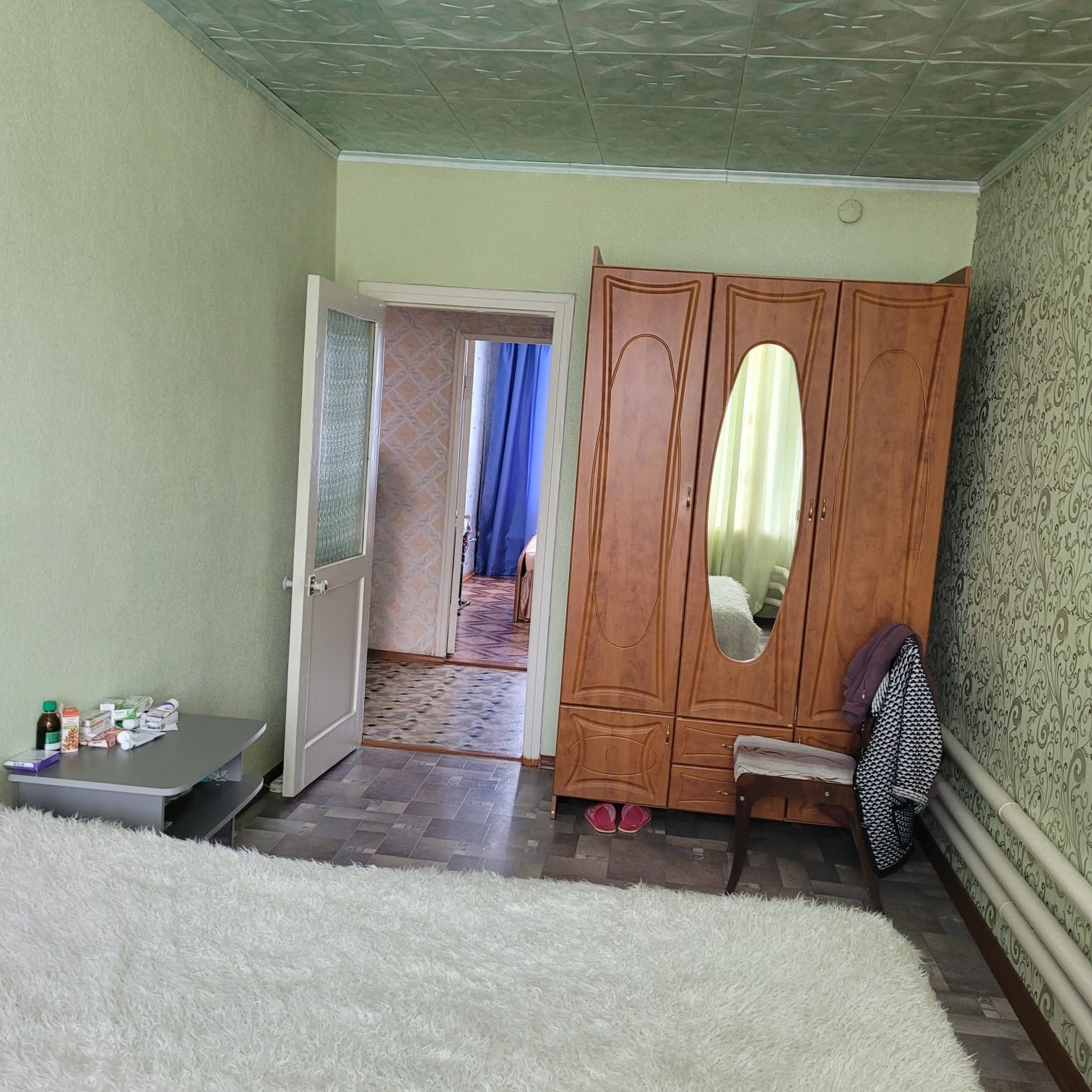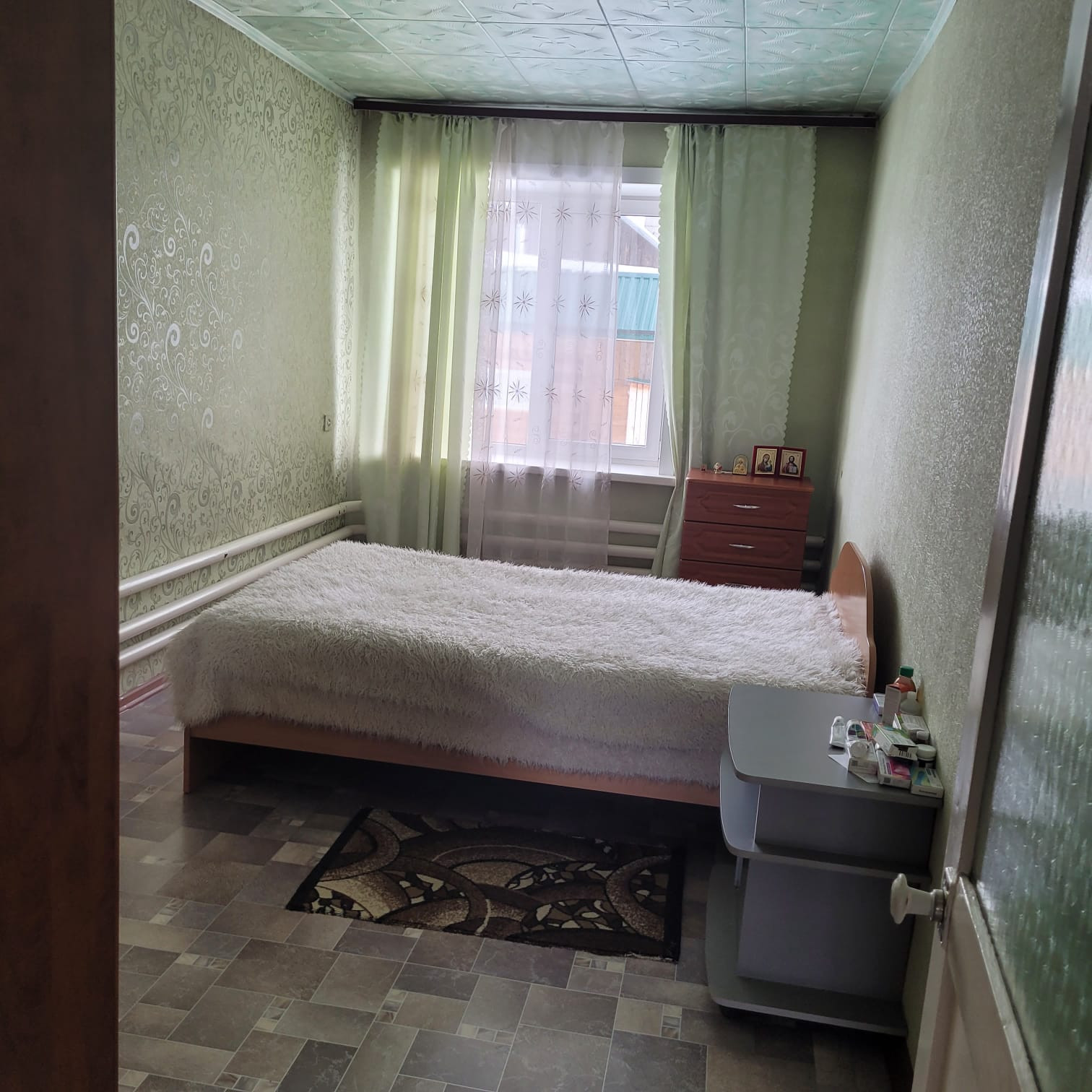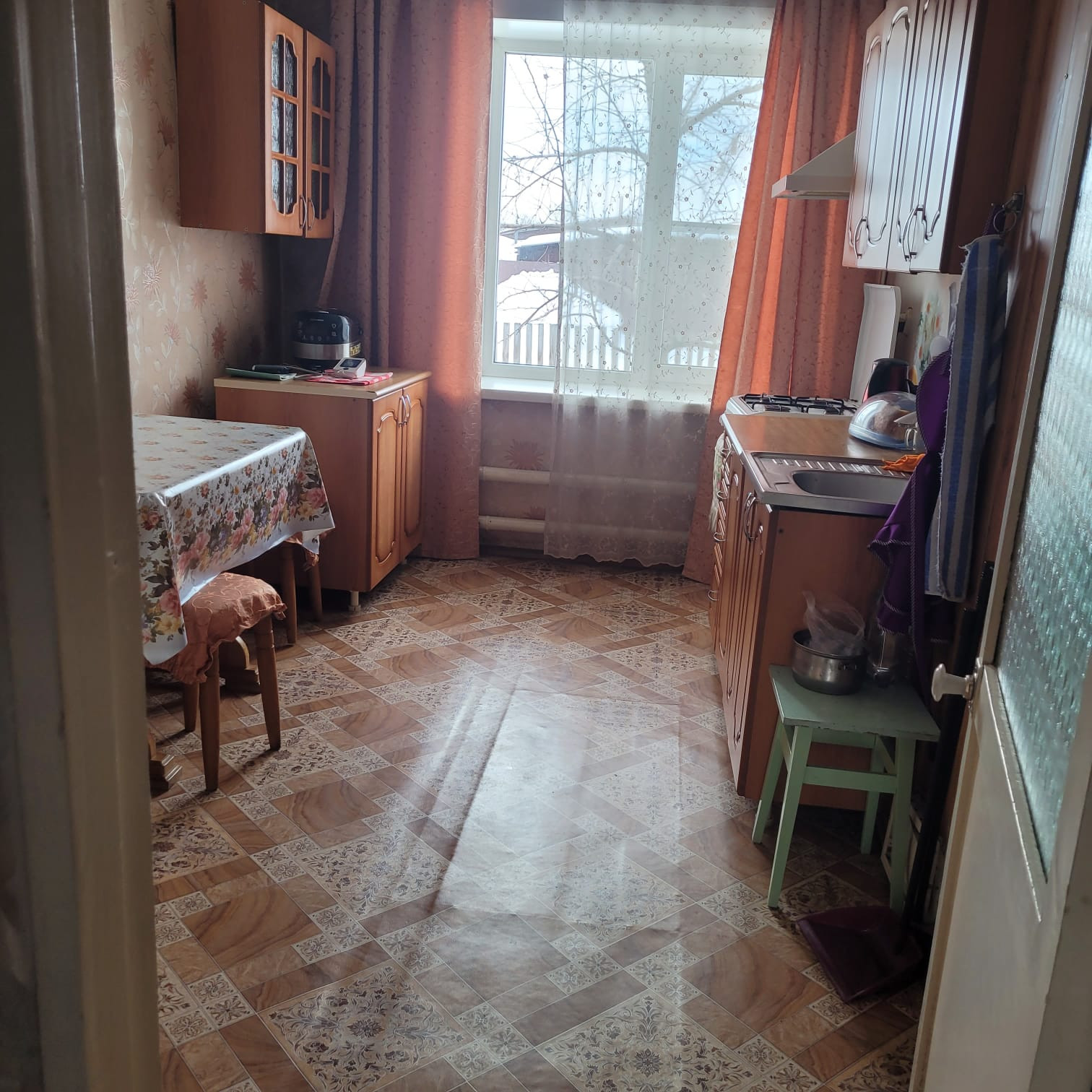 Продается квартира на земле, подходит под ипотеку. Дом из бруса на 2 хозяина, ухоженный, 120м2. В квартире три изолированные комнаты и кухня, большой коридор и сан узел, большая веранда. Отопление печное водяное, вода центральная. Есть подвальное помещение узаконенное на 60 м2 , в подвале стоит печь, тепло и сухо. Баня, большой гараж и другие надворные постройки. Есть небольшой огород. Большая ограда выложена плиткой. Возможен обмен на однокомнатную квартиру с ремонтом и доплатой. В конце года будет подведен газ. Торг уместен.