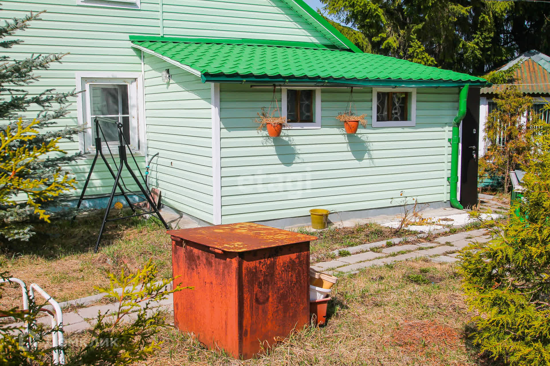 На участке современная баня, уютная беседка, бассейн каркасный с системой очистки воды, скважина 20 метров, вода заведена в дом. Участок ухоженный, выделена зона барбекю, мангал, игровая зона с безопасным покрытием для детей, качели. Есть зона для парковки машин снаружи и внутри двора. Отдельно сарай, участок для помещения под газовую колонку и гараж. Забор из профнастила.
