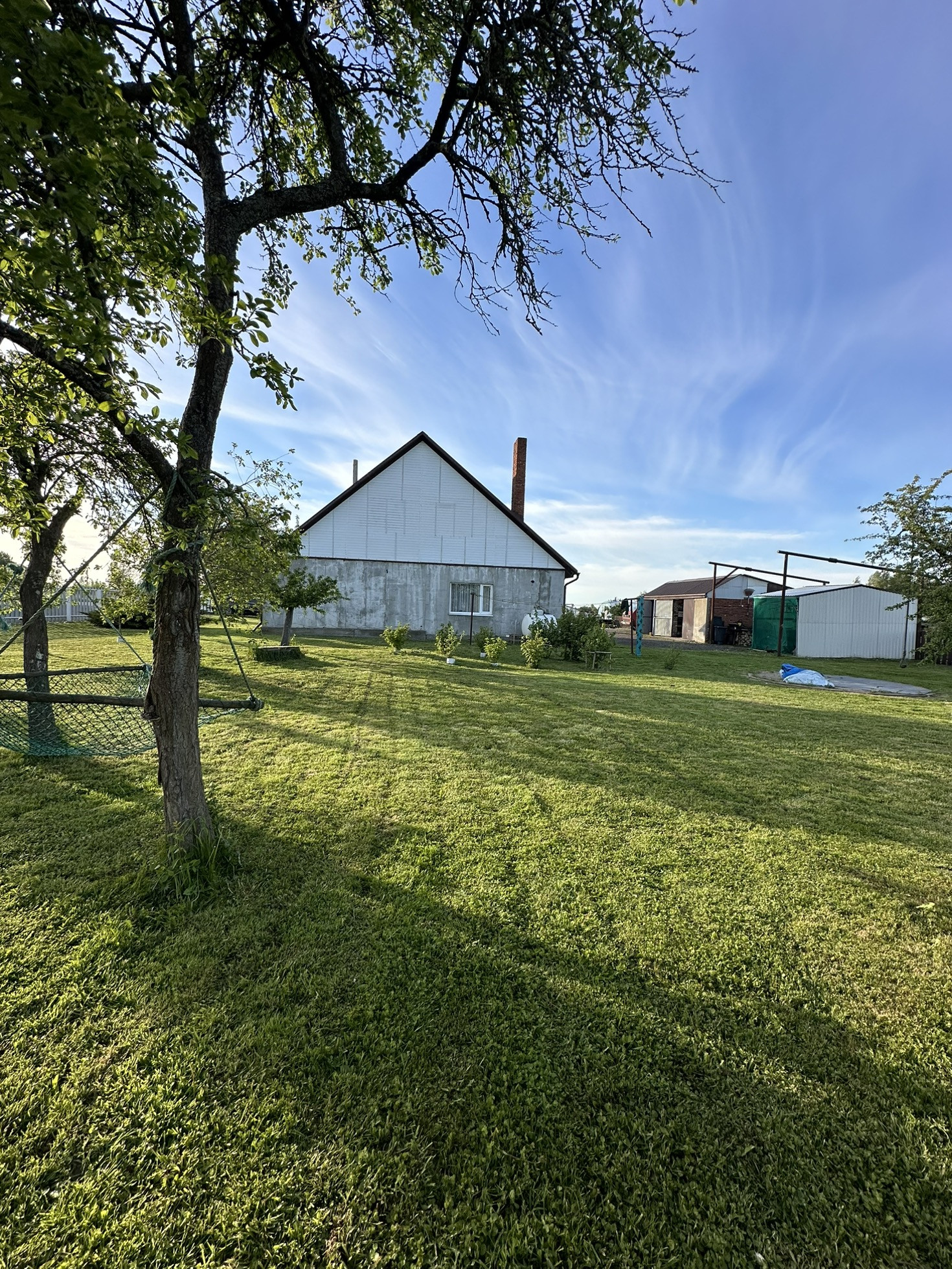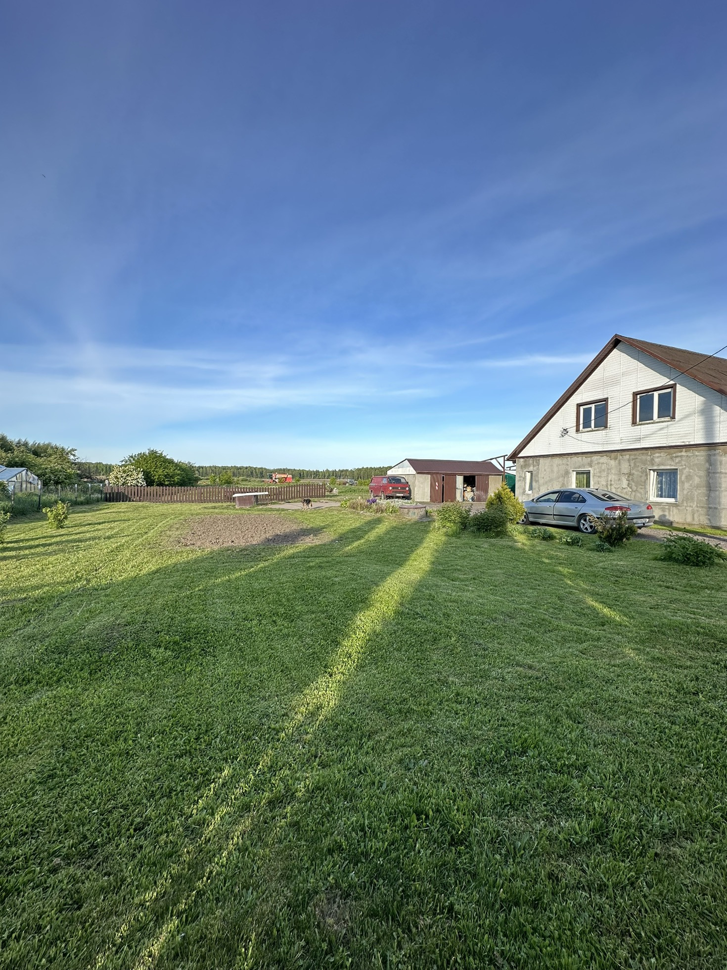Сухой , ровный участок. На участке гараж на две машины. Плодовые деревья и кустарники.
