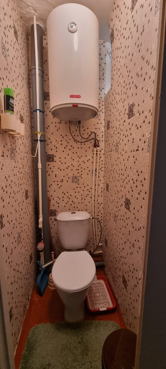 Санузел раздельный, ванная в кафеле, пластиковые трубы,водонагреватель.