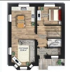 1ый этаж: кухня-гостиная, санузел, гостевая комната,