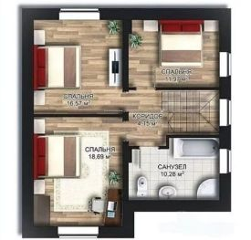 2 этаж: 3 комнаты, санузел.