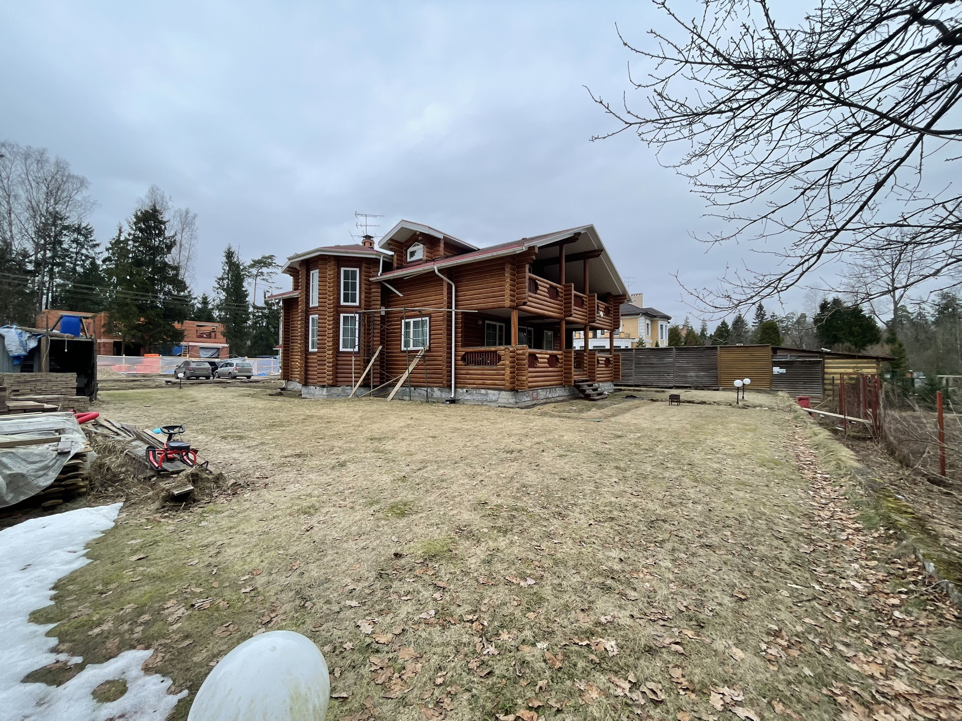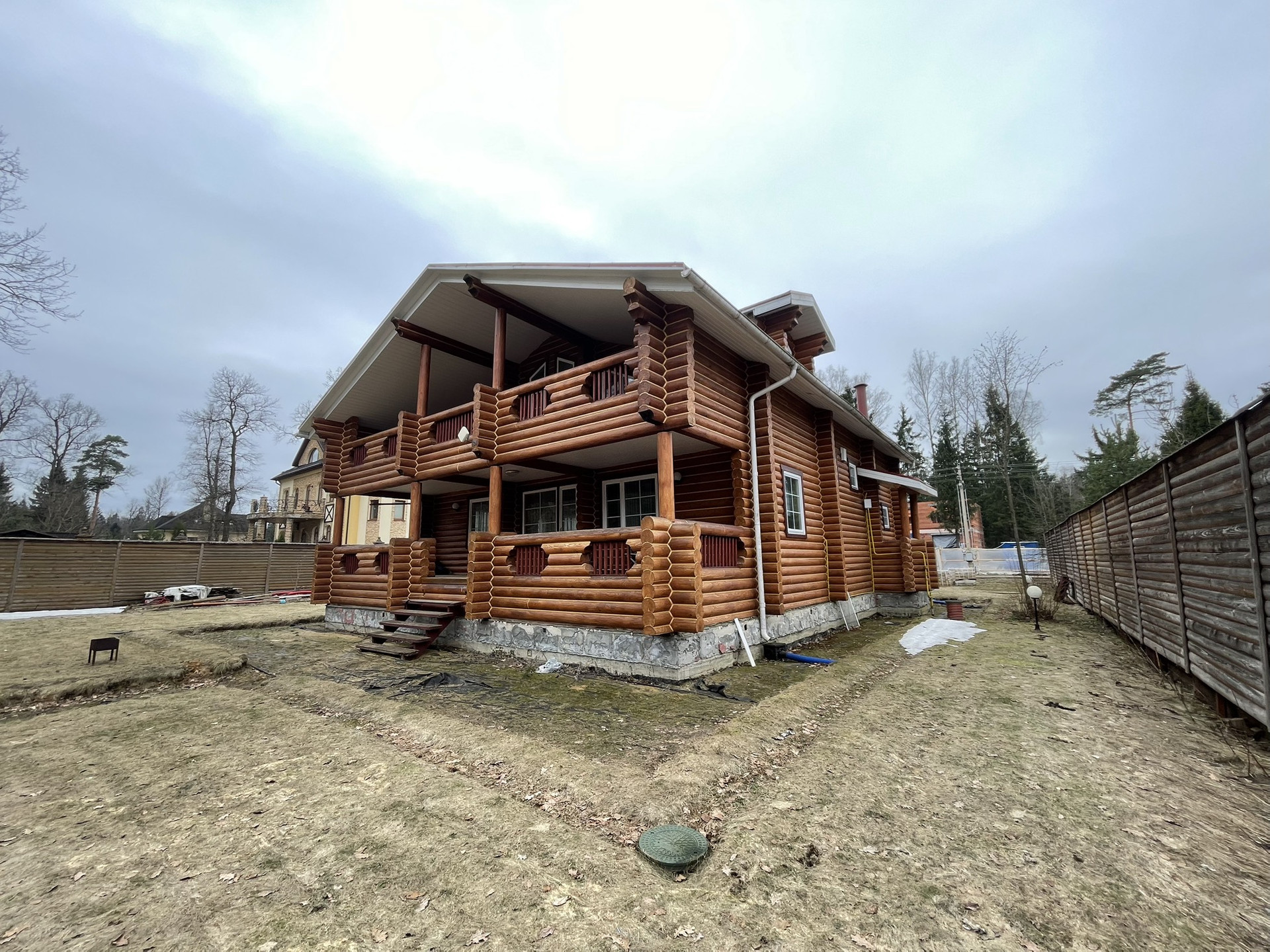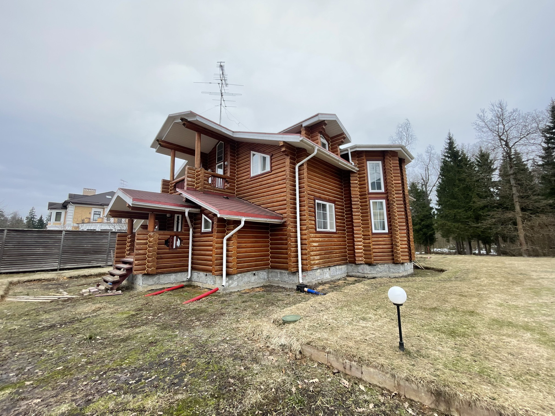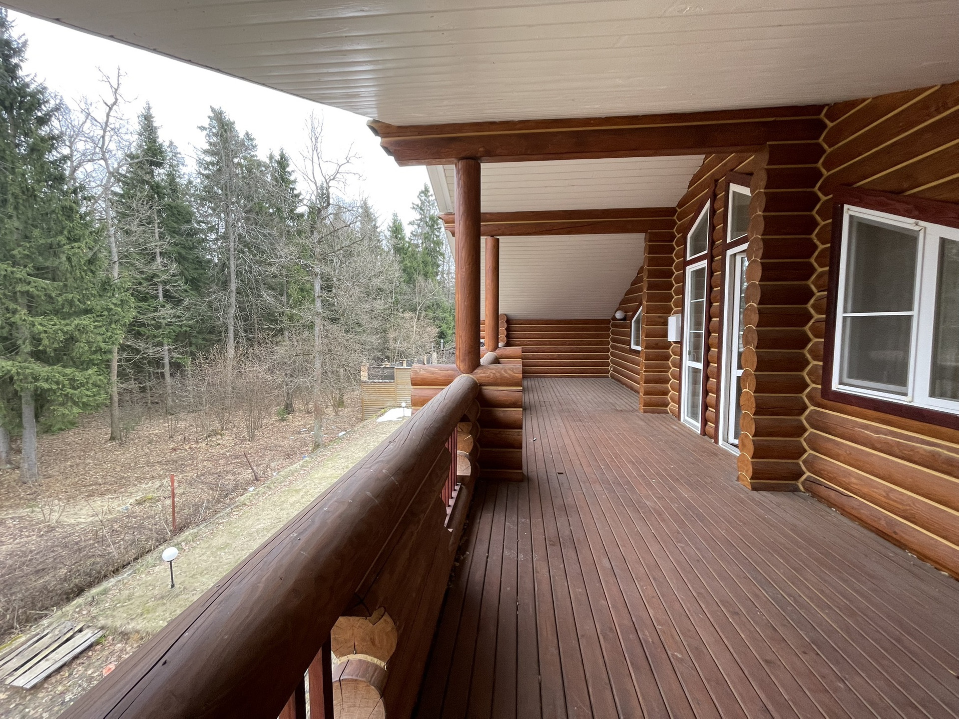 Дом из оцилиндрованного вологодского леса 2006 года постройки в очень хорошем состоянии в поселке с круглосуточной охраной.Участок 12 соток, ровный  размером 30 на 40 метров, у края леса. заключен договор аренды на  49 лет примыкающего лесного участка.