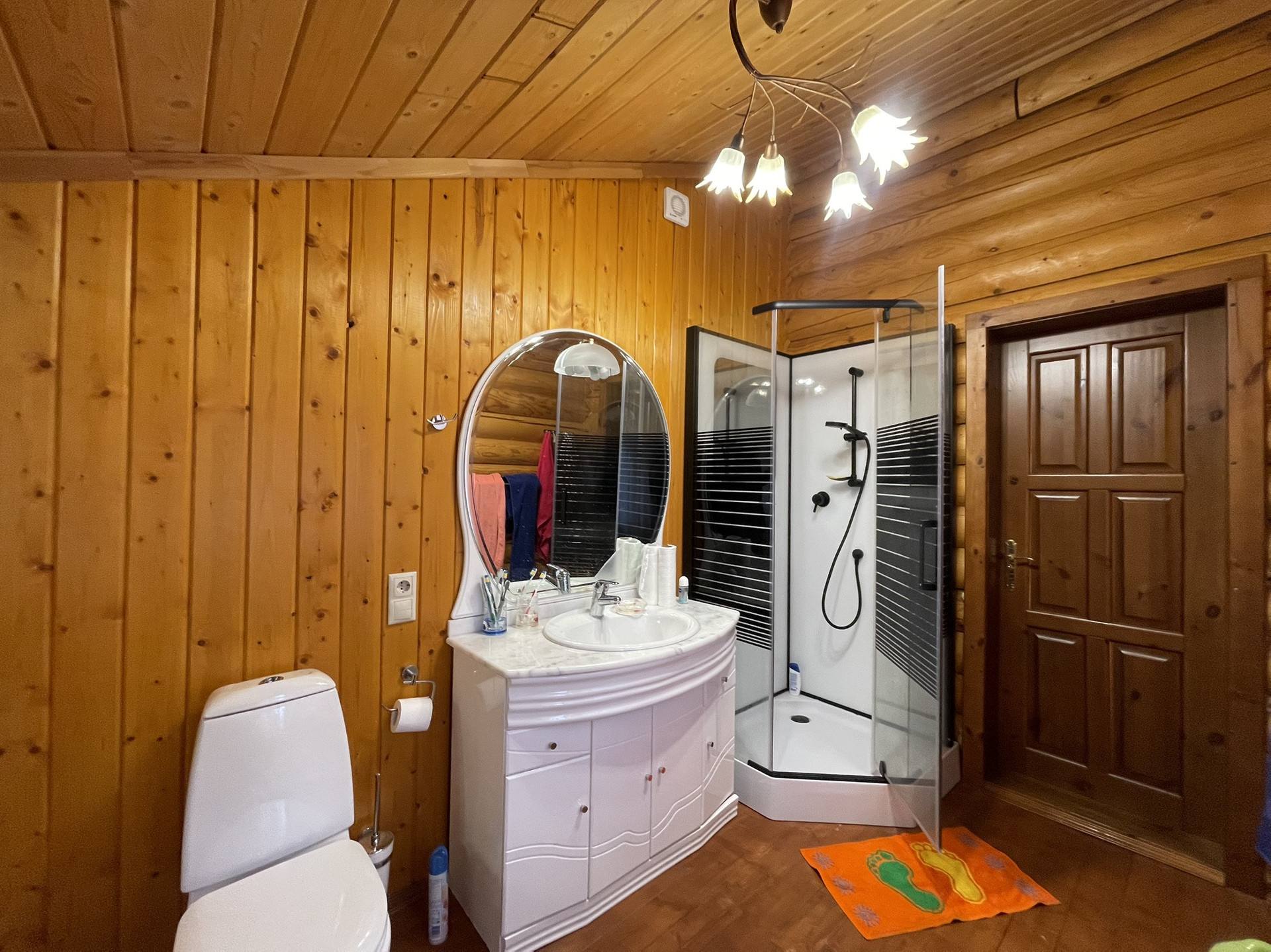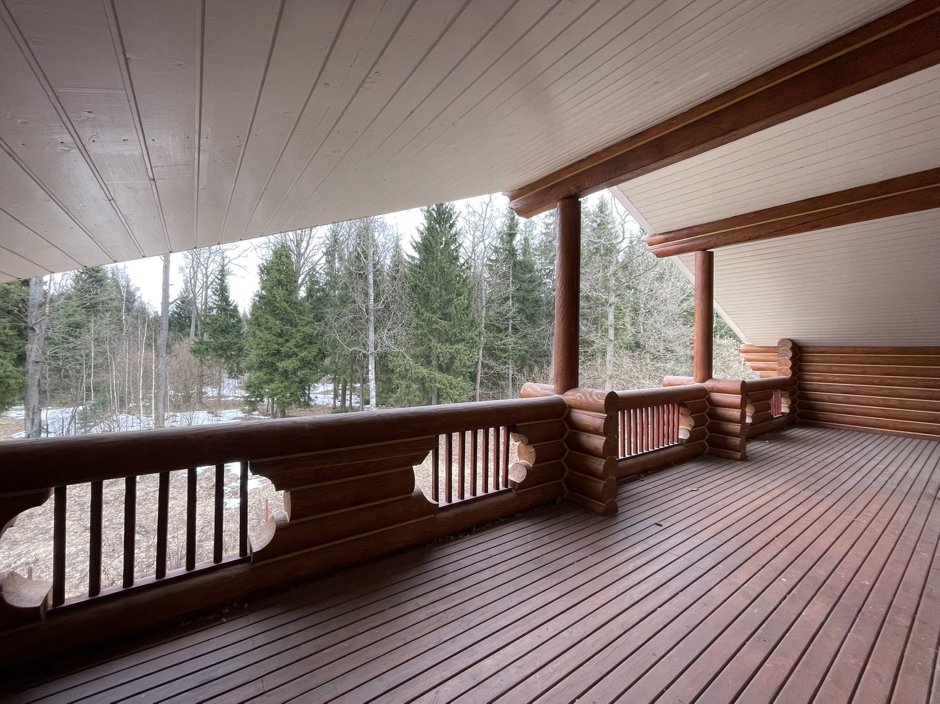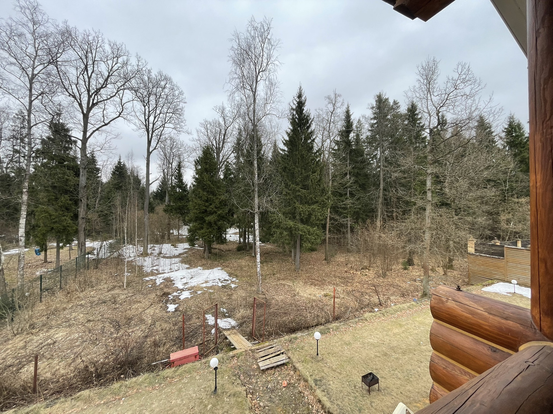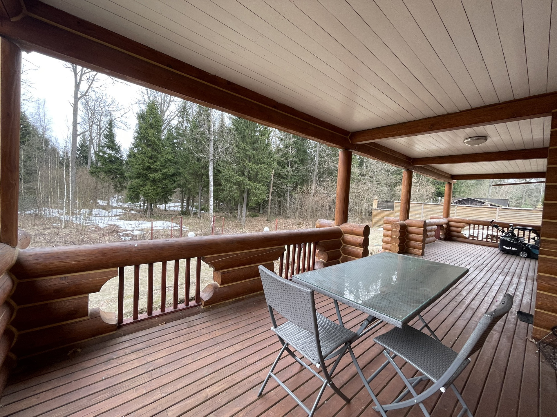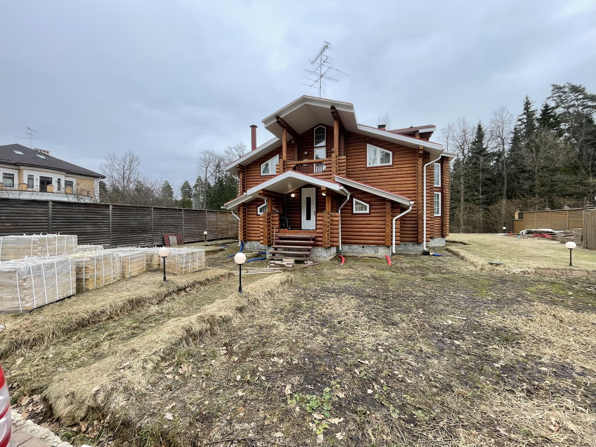 Дом из оцилиндрованного вологодского леса 2006 года постройки в очень хорошем состоянии в поселке с круглосуточной охраной.Участок 12 соток, ровный  размером 30 на 40 метров, у края леса. заключен договор аренды на  49 лет примыкающего лесного участка.