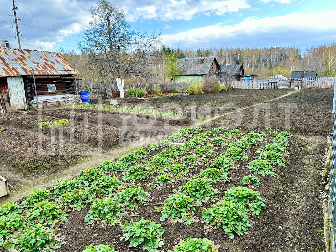 Участок ухоженный, с растущими, плодоносящими деревьями и кустарниками: малиной, яблонями, вишней, жимолостью, крыжовником, клубникой.