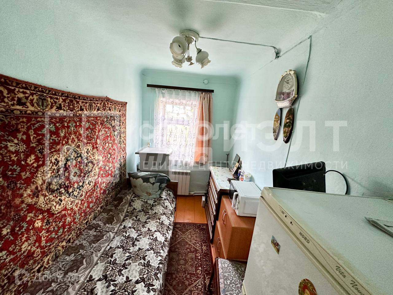 Дом построен из лиственницы, именно эта порода древесины отличается высокими техническими и эксплуатационными характеристиками, долговечностью и высокой экологичностью. Фасад из металлического сайдинга, крыша из металлочерепицы, окна ПВХ. В доме есть три отдельные комнаты и кухня.