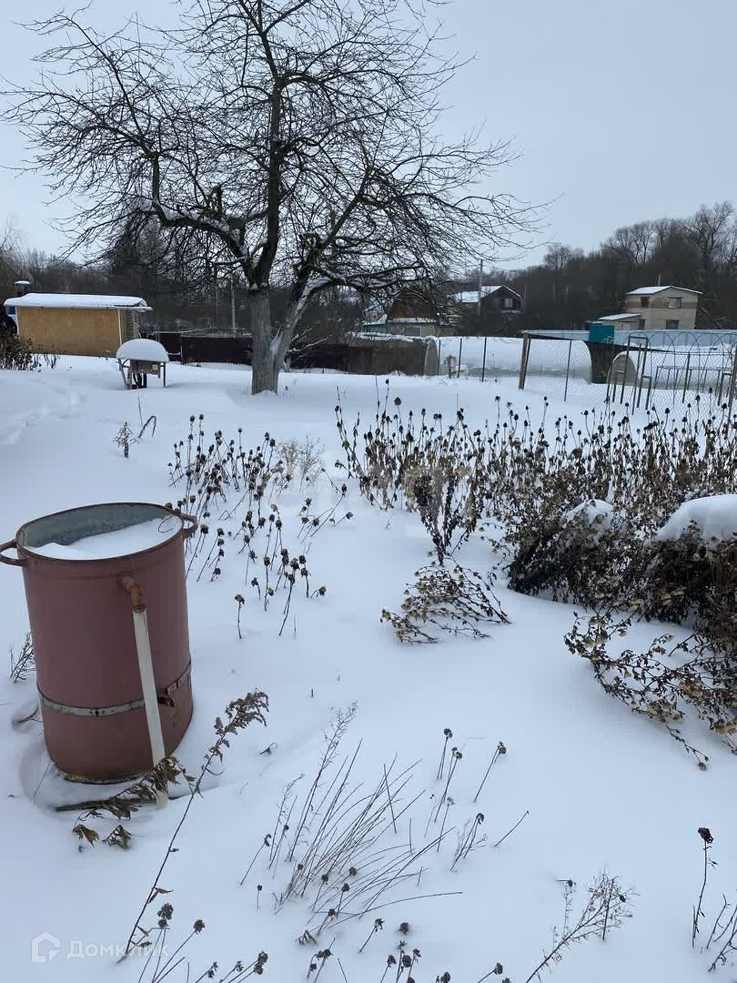 Участок под небольшим уклоном, но это преимущество во время дождей (вода не застаивается). Есть сарай под инструмент,с двумя входами.