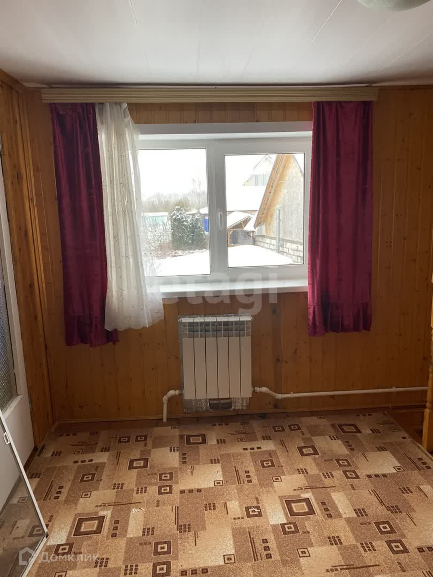 Окна частично пластиковые, частично деревянные.
