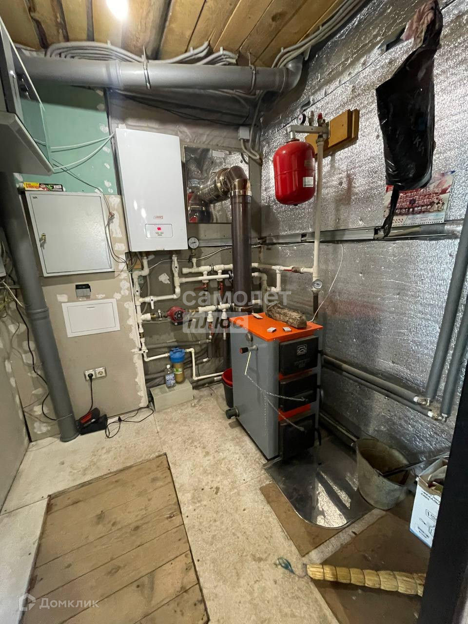Отопление: водяное, стальные радиаторы, электрический котёл и твёрдотопливный котёл.