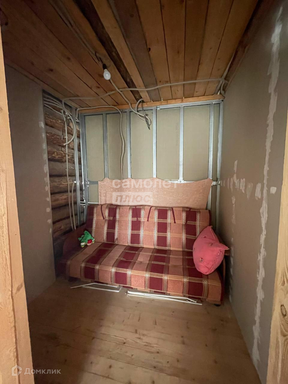 Двухэтажный дом: бревенчатый, снаружи утеплен мин.ватой, обшит сайдингом.