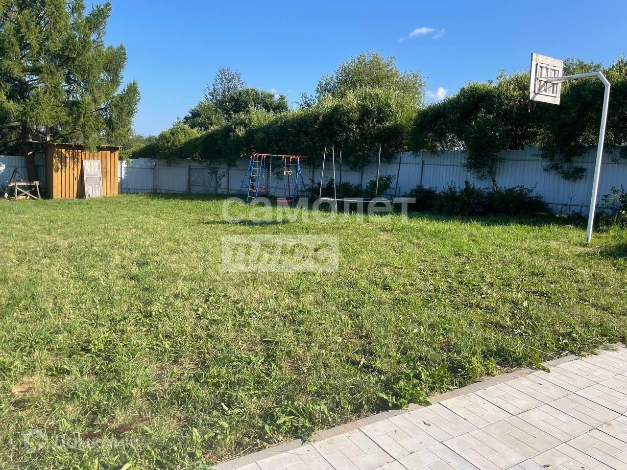 На участке: детская площадка, батут, баскетбольное кольцо, сарай, металлический забор с откатными воротами. Зеленые насаждения: лиственница, туи, каштаны, яблони, смородины ит.д.