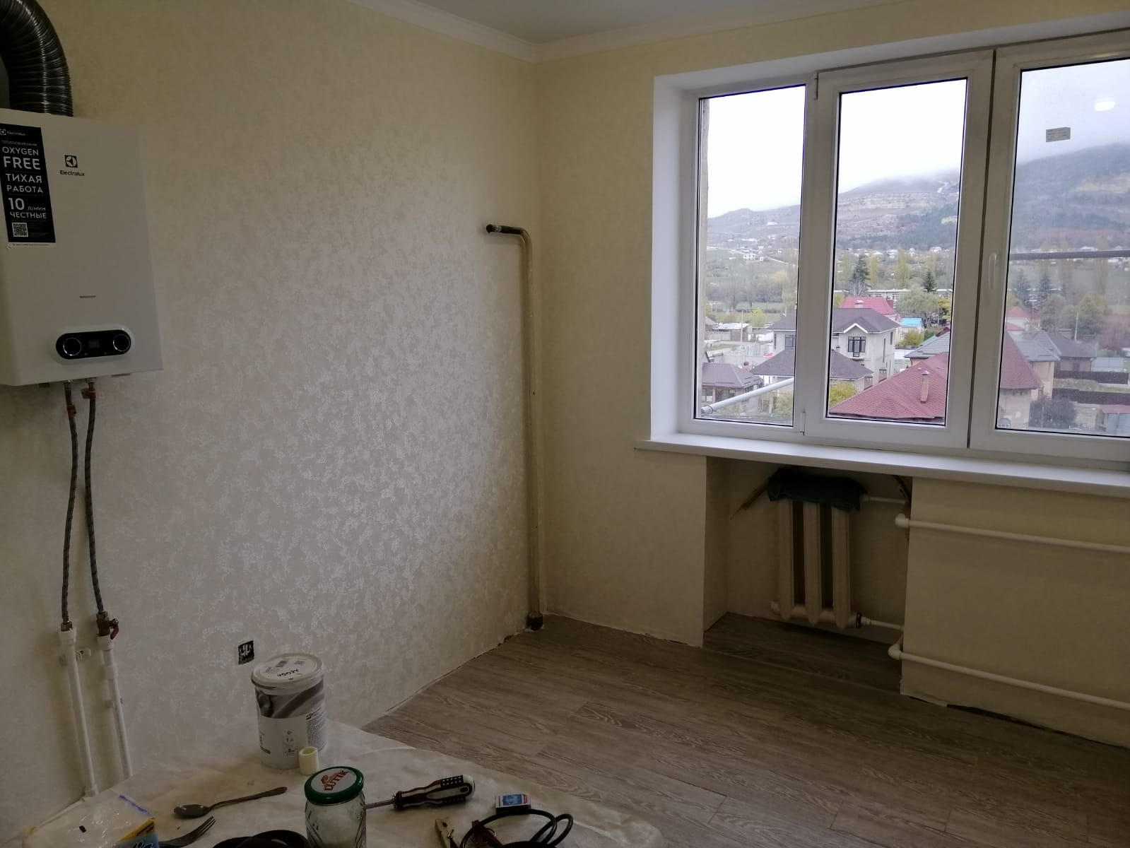 На кухне стоит новая газовая колонка.