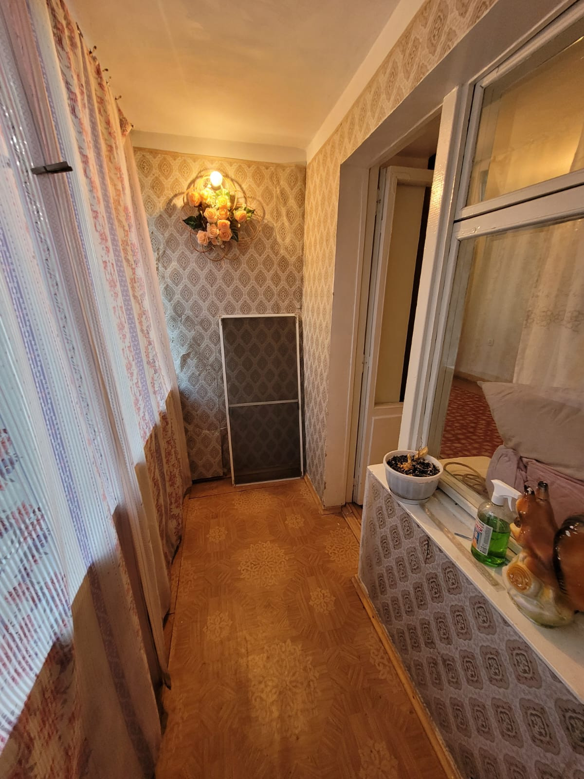 Косметический ремонт, новые окна ПВХ, в комнате пол - паркет, лоджия из комнаты, балкон из кухни, с/у совмещённый, все трубы новые пластиковые. Новый газовый счетчик.