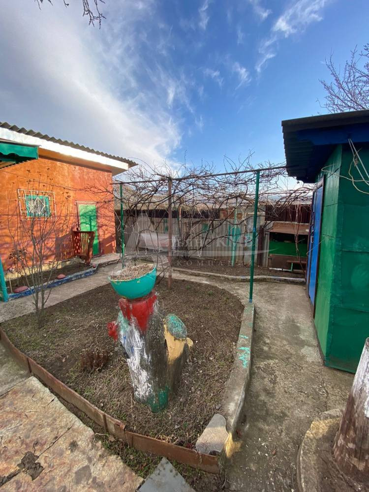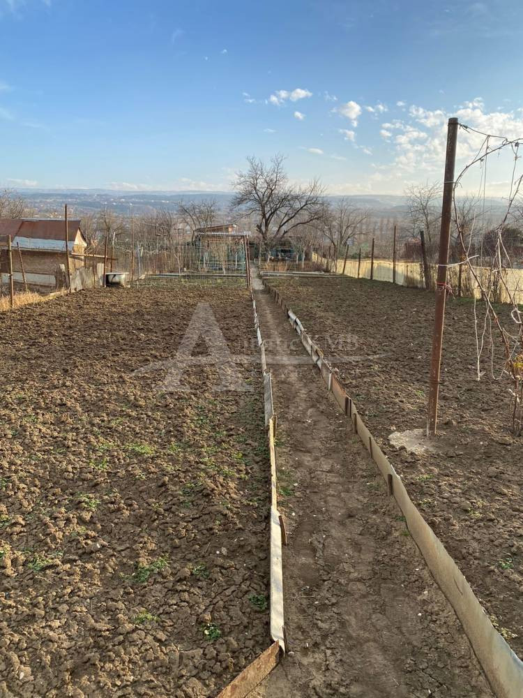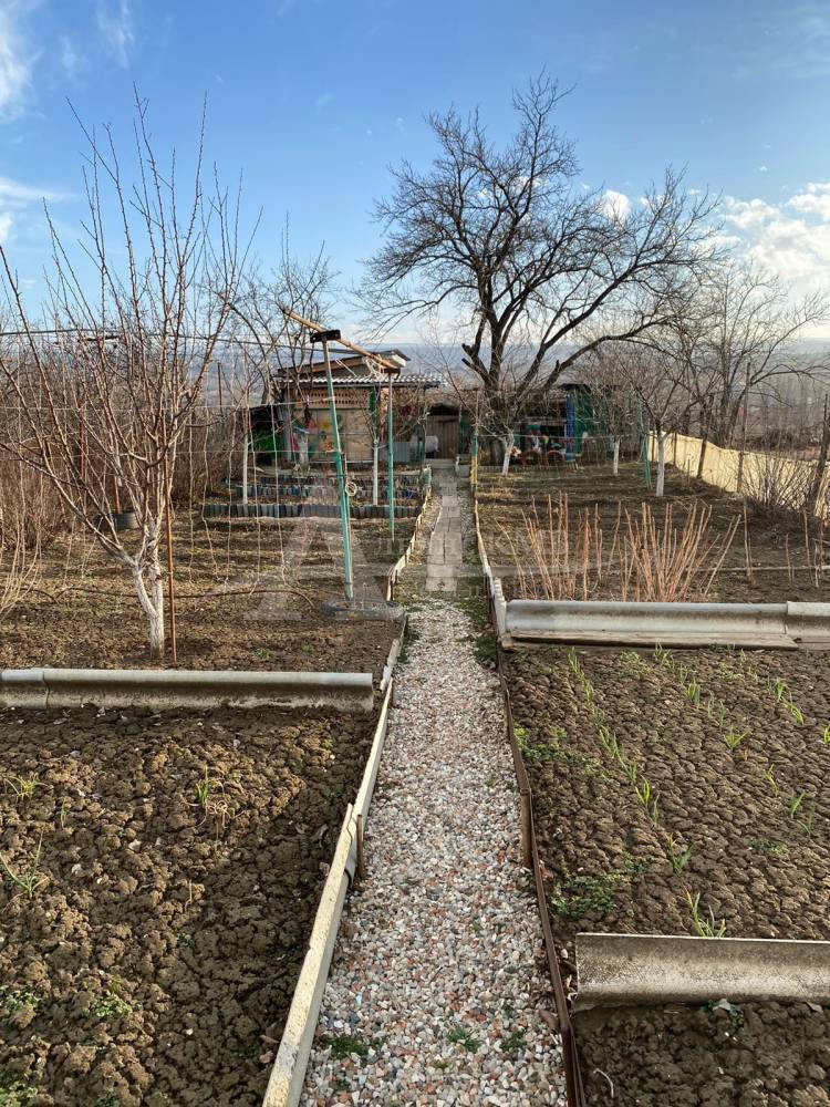 На участке маленький домик из блоков. Имеется свет, вода рядом по меже, газ через участок, выгребная яма.