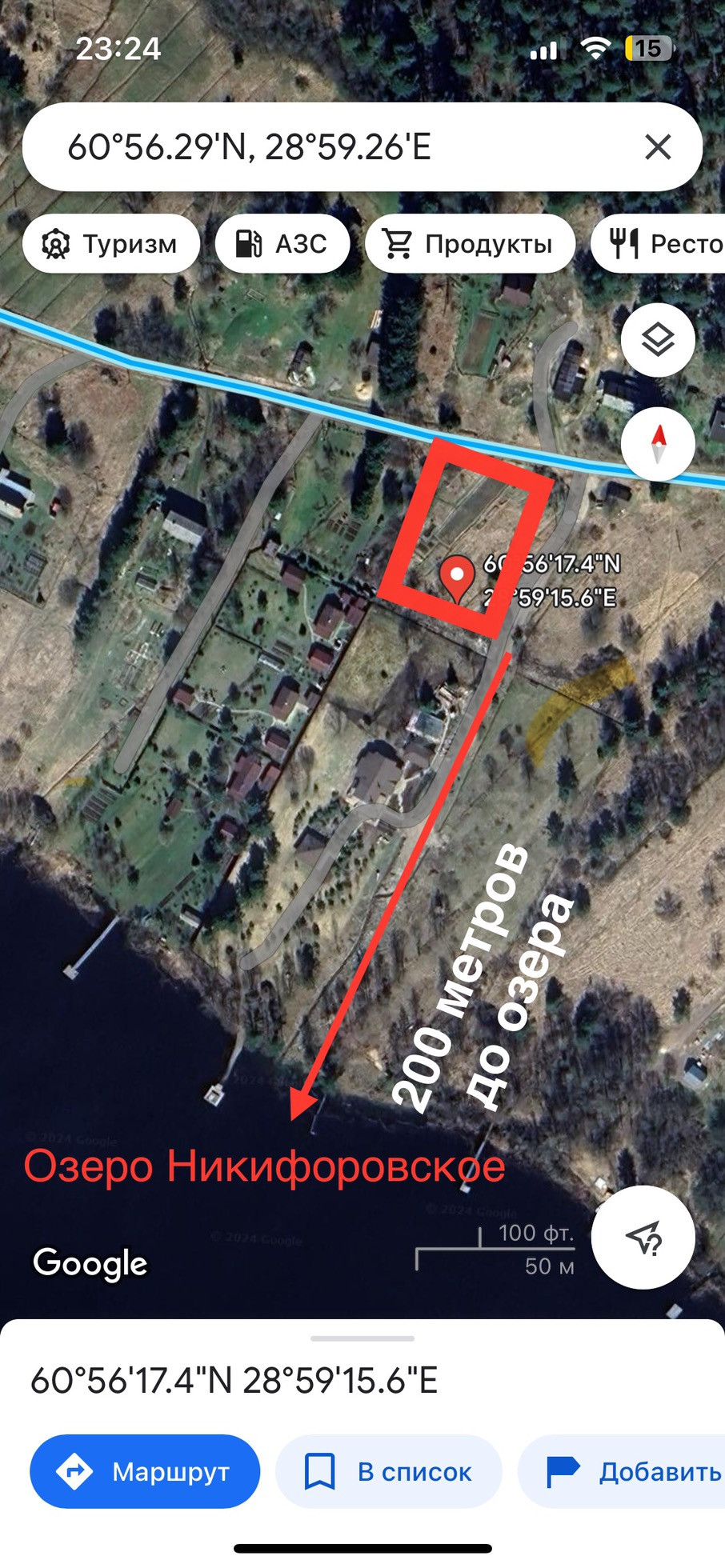 Точка для навигатора:  60.938316, 28.987798